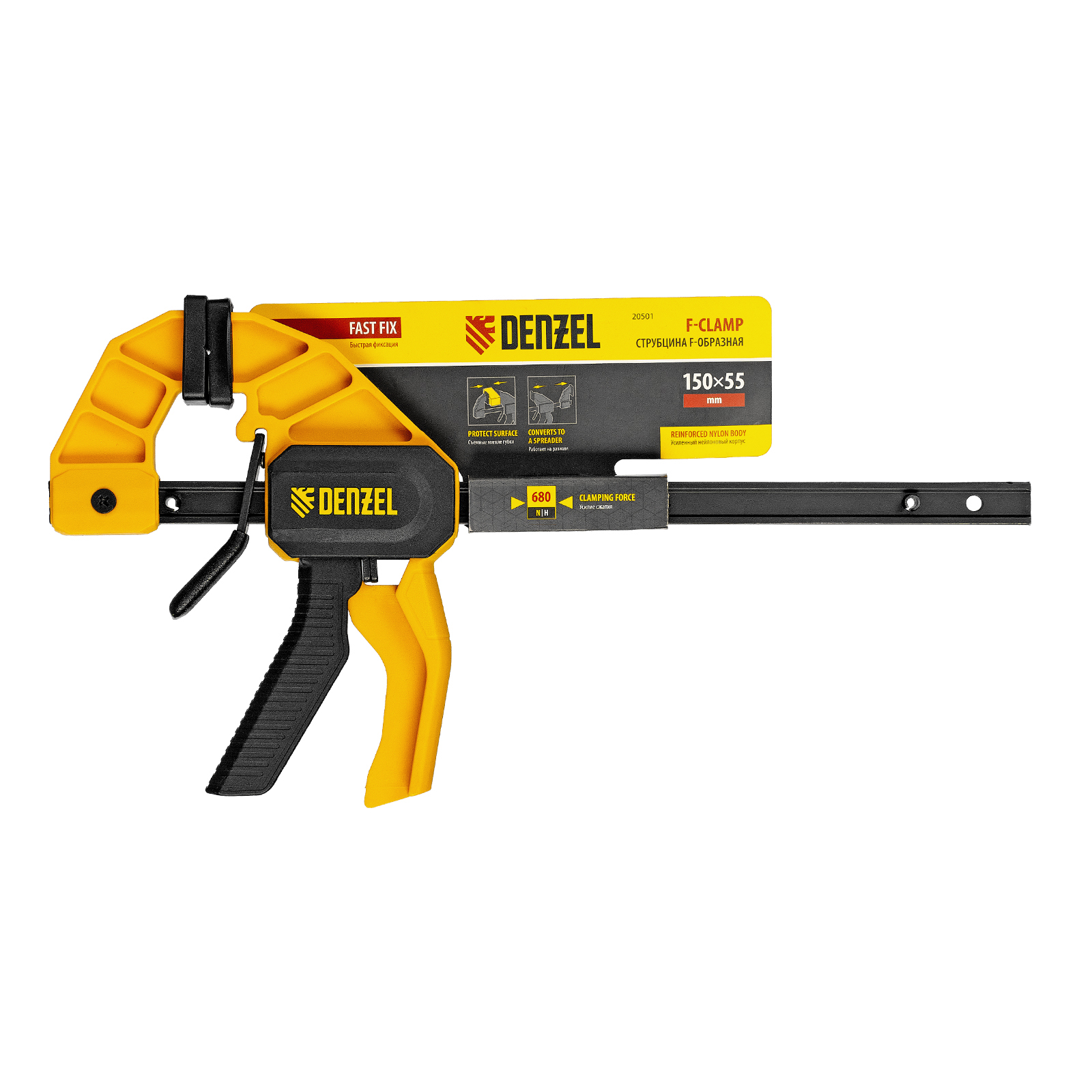Струбцина F-образная, быстрозажимная, 150 х 55 мм, усиленный нейлоновый корпус Denzel в Москве