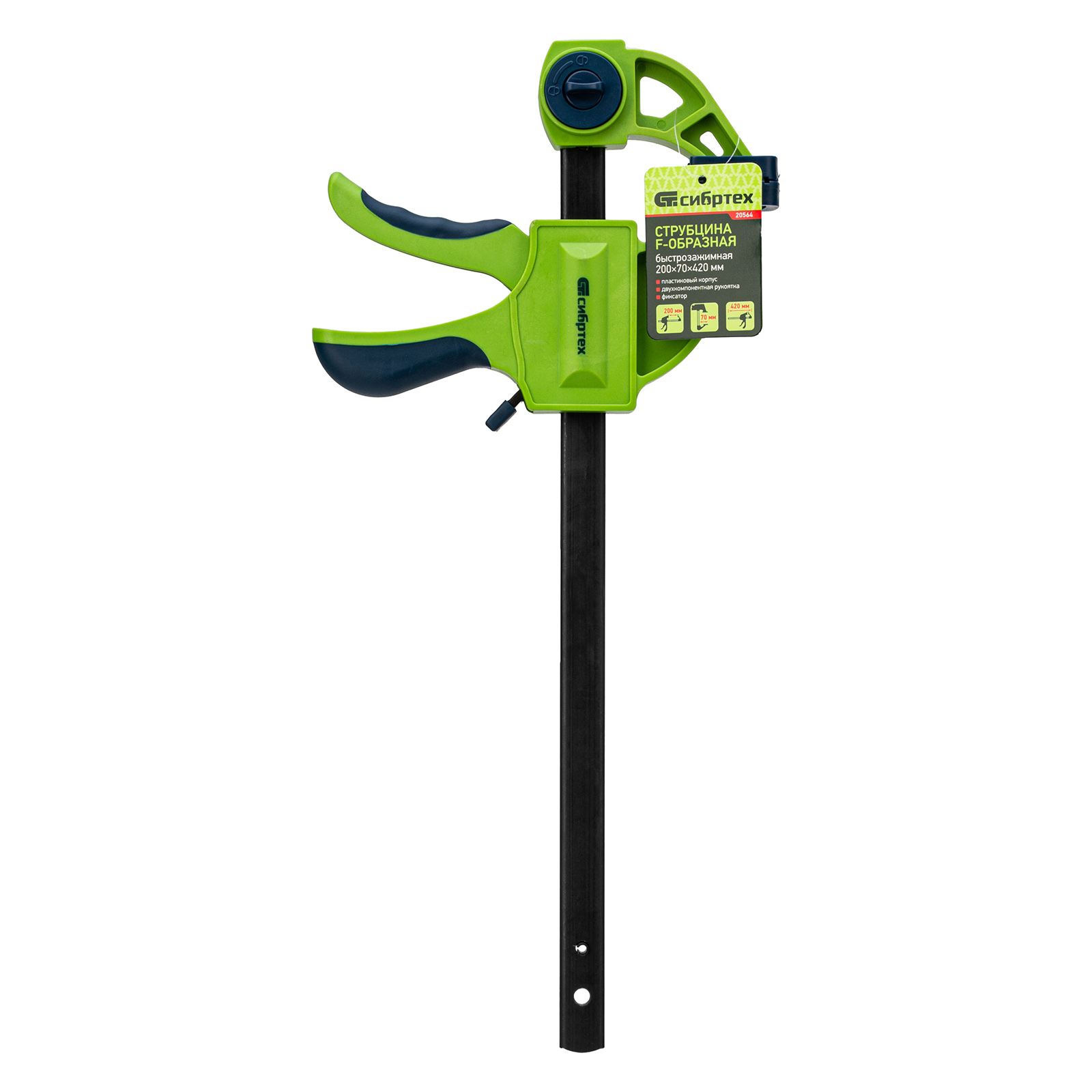 Струбцина F-образная, быстрозажимная, 200 х 70 х 420 мм, пластиковый корпус, фиксатор, двухкомпонентная рукоятка Сибртех в Москве