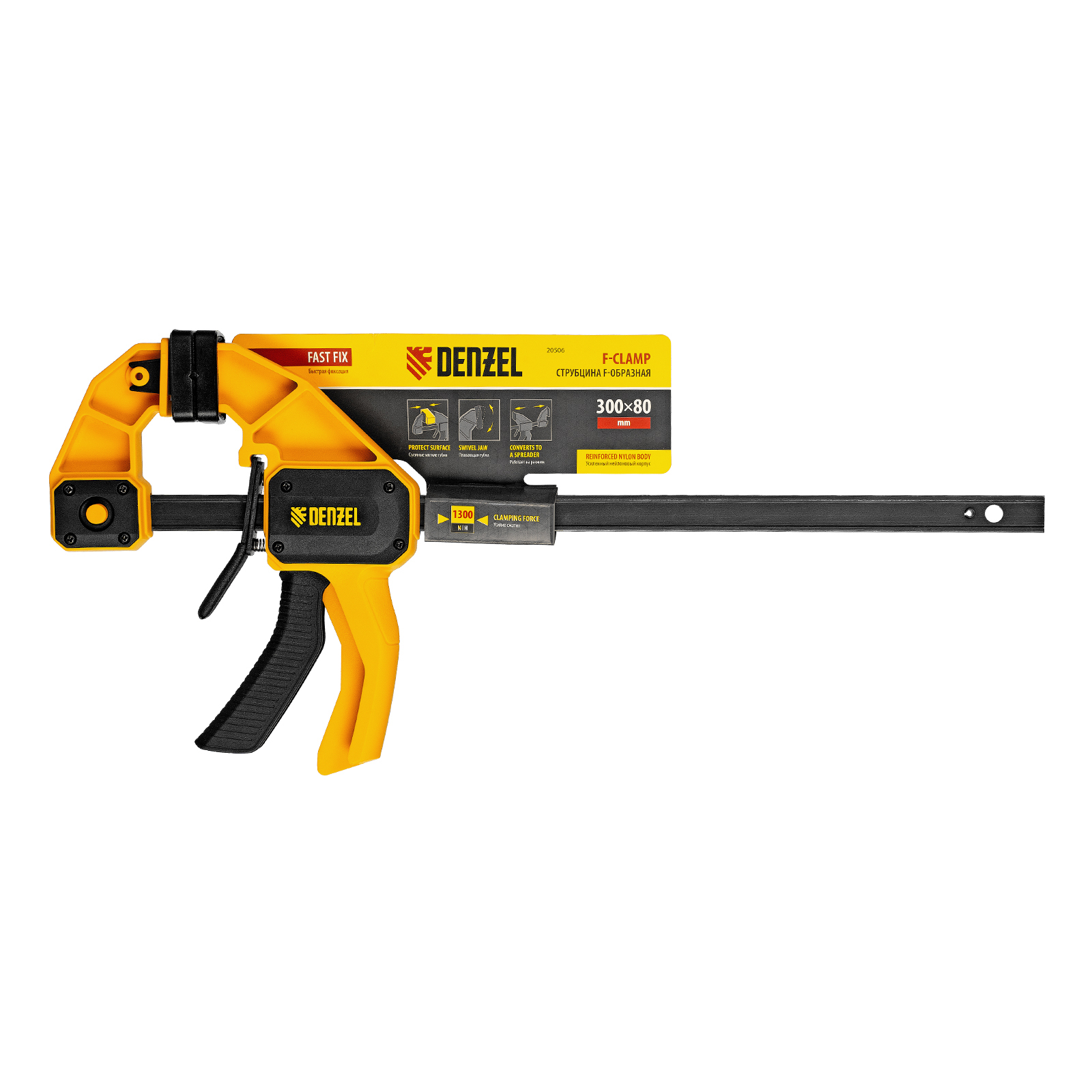 Струбцина F-образная, быстрозажимная, 300 х 80 мм, усиленный нейлоновый корпус Denzel в Москве
