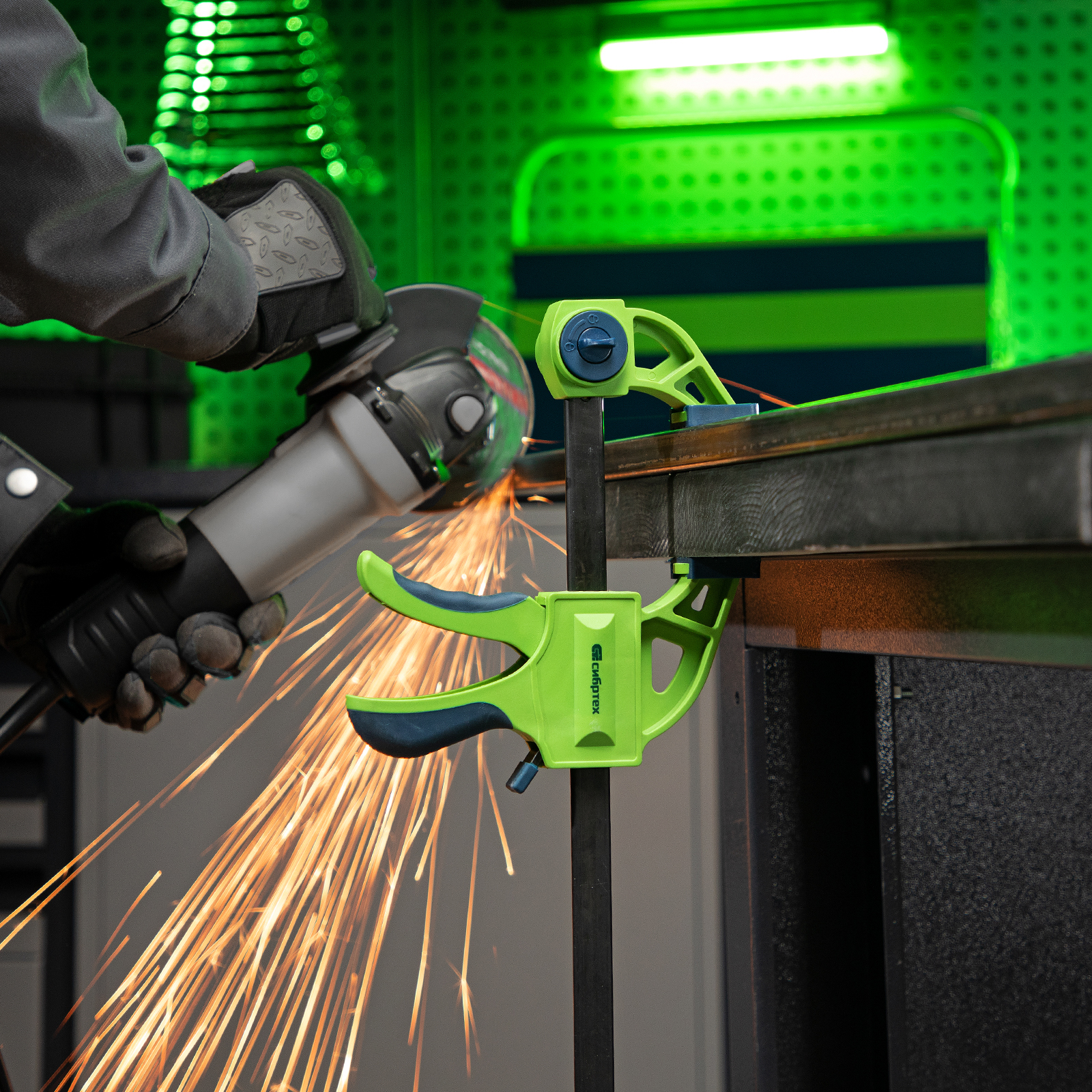 - Дополнительные возможности — опорную губку можно переставить на другой конец штанги, превратив струбцину в распорный инструмент.