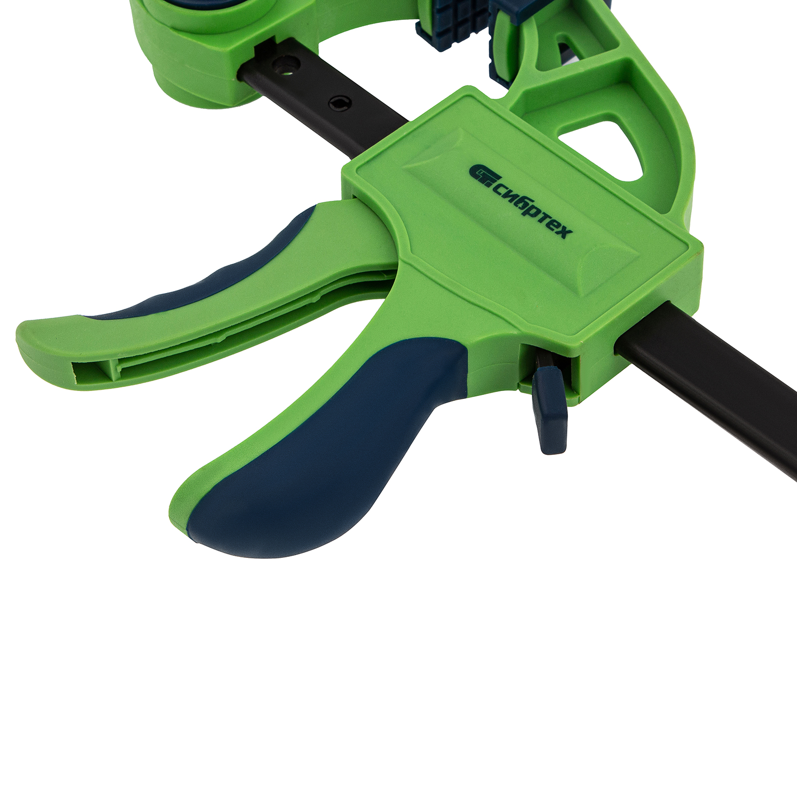F-образная быстрозажимная струбцина Сибртех 20567 длиной 820 мм, с шириной и глубиной зажима 600 и 70 мм соответственно, в пластиковом корпусе, с фиксатором и двухкомпонентной рукояткой, позволяет зажимать заготовки для их дальнейшей обработки или сборки. Помогает решать множество задач благодаря оптимальной глубине зажима. Пластинчатый механизм пошагово перемещает подвижную губку вдоль направляющей до достижения максимально плотного захвата детали. Фиксатор препятствует движению губки в обратную сторону. Струбцина пригодится в столярной мастерской, а также будет полезна в быту.