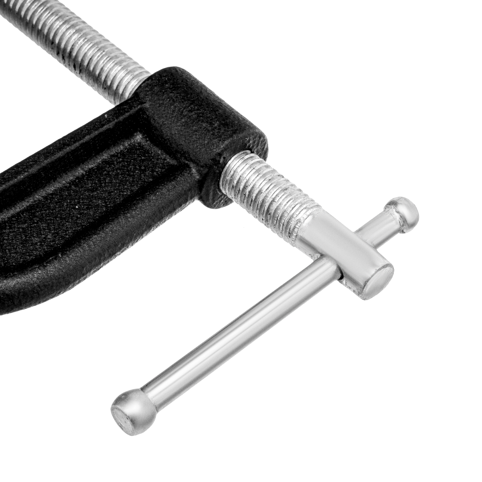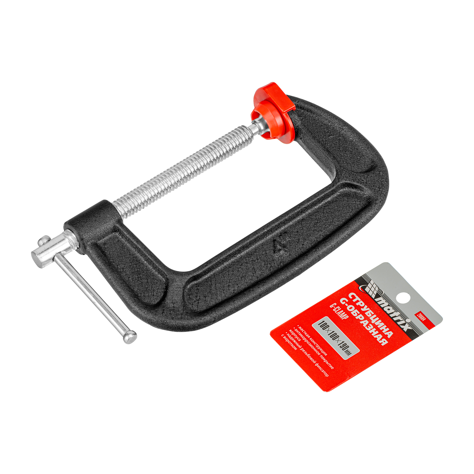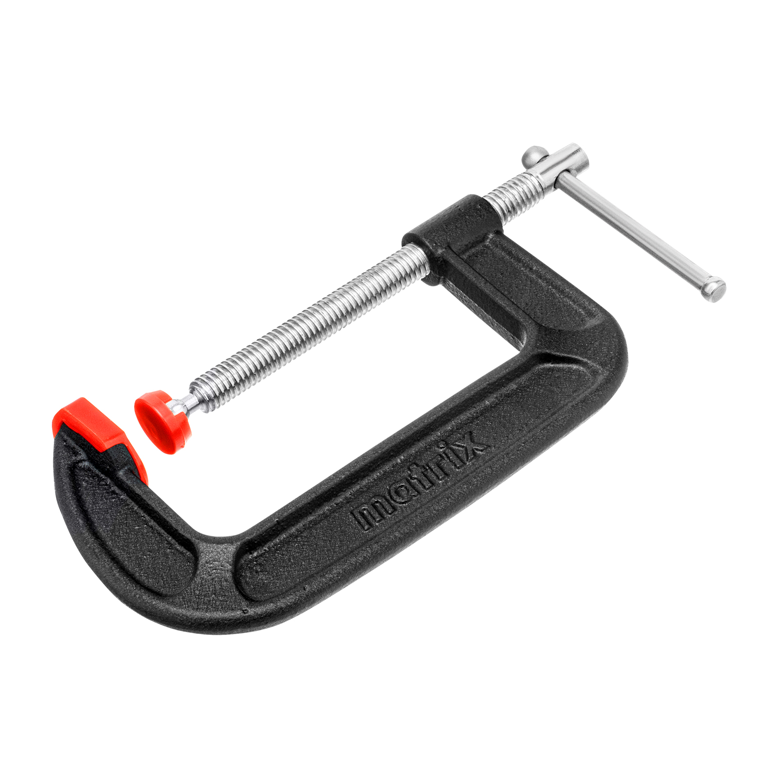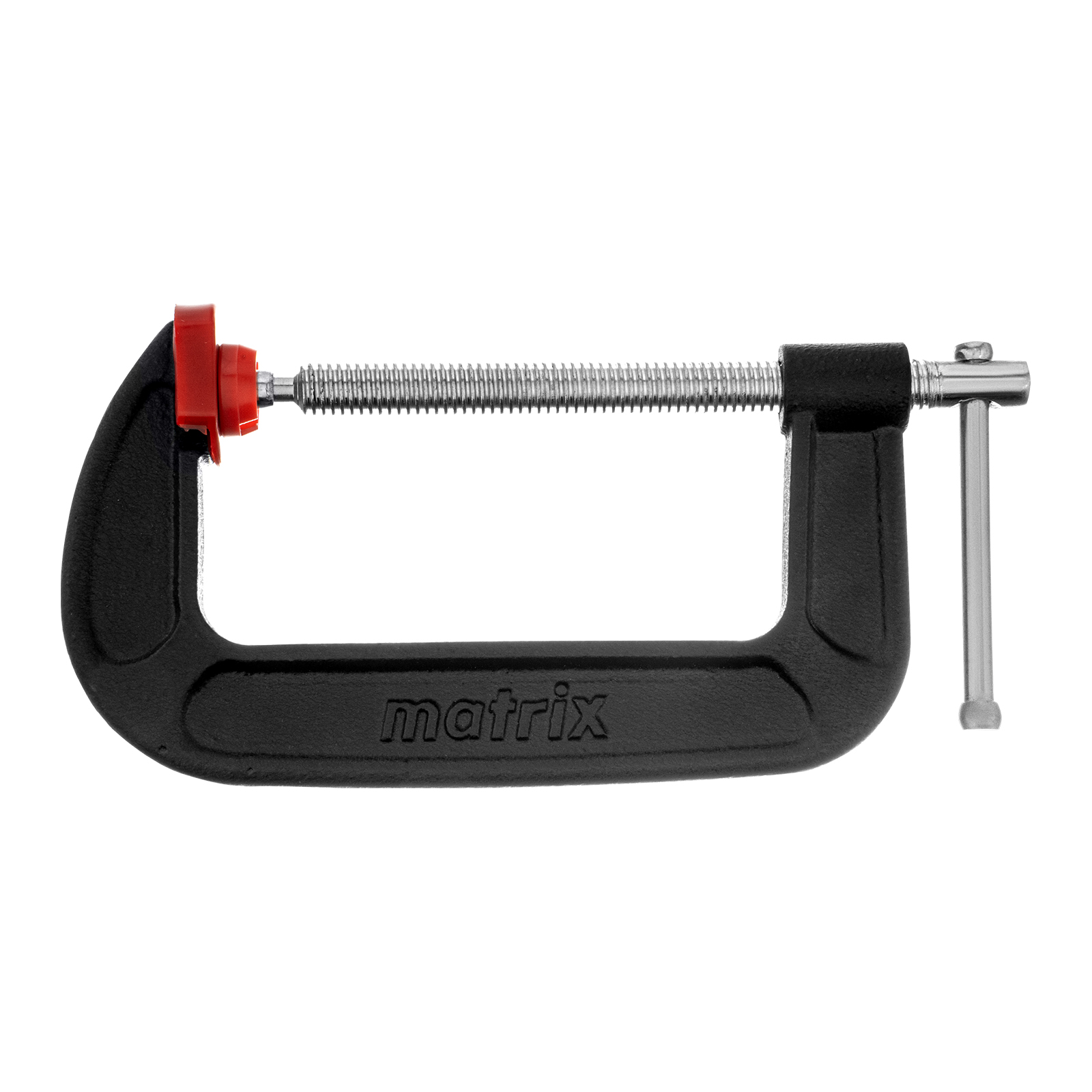 G-образная струбцина Matrix 20604 с максимальной шириной зажима 100 мм используется для фиксации заготовок или закрепления их на верстаке или станке. Позволяет склеивать детали, а также сверлить их, шлифовать, опиливать и проводить другие работы. Подходит для использования при сварке. Рама изготовлена из высокопрочного чугуна, поэтому выдерживает значительные усилия. Винт с трапециевидной резьбой обеспечивает надежную фиксацию предметов. Струбцина применяется в слесарном и столярном деле, а также в домашнем хозяйстве.