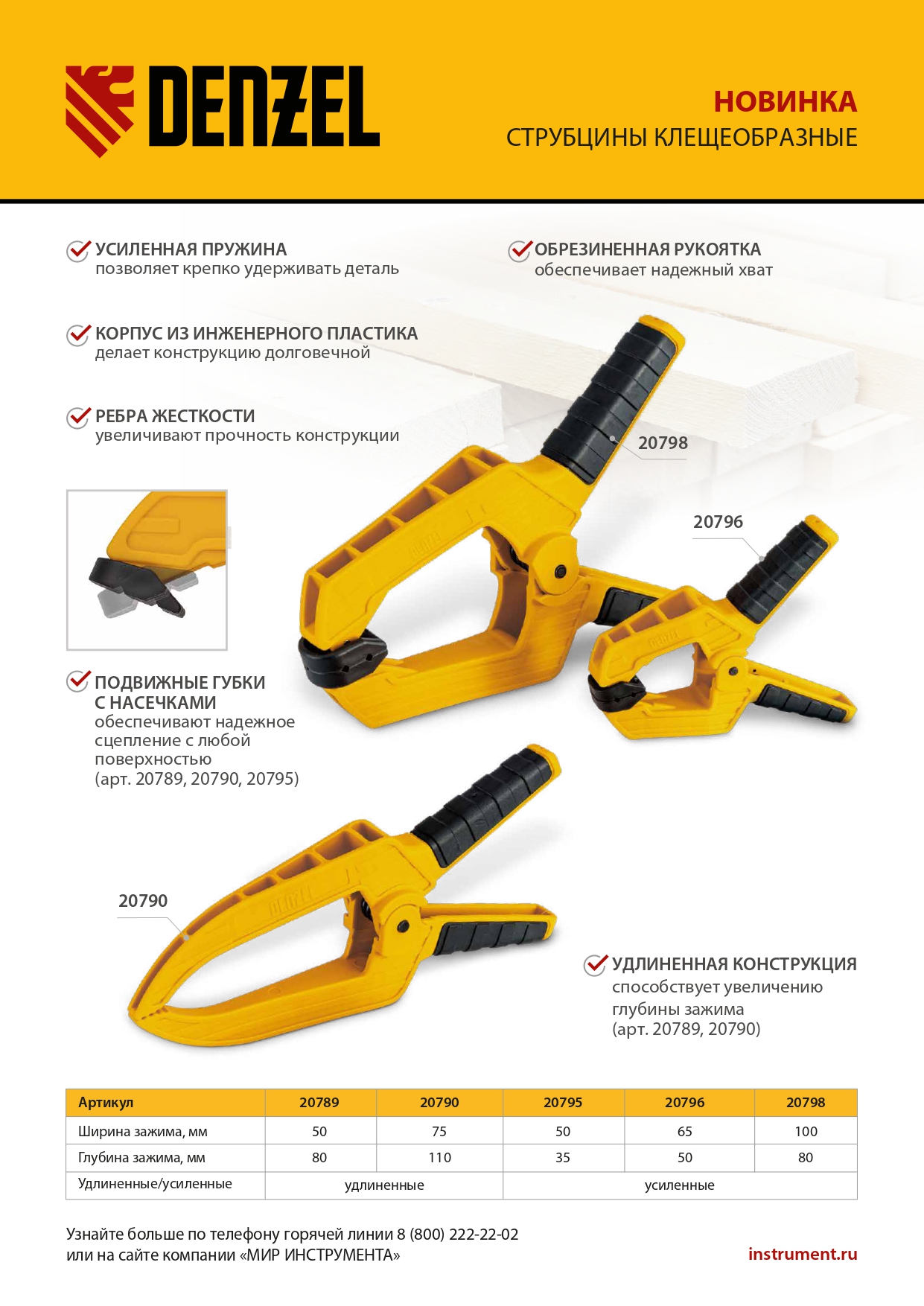 Струбцина клещеобразная, усиленная 65 х 50 мм, двухкомпонентные рукоятки Denzel в Москве