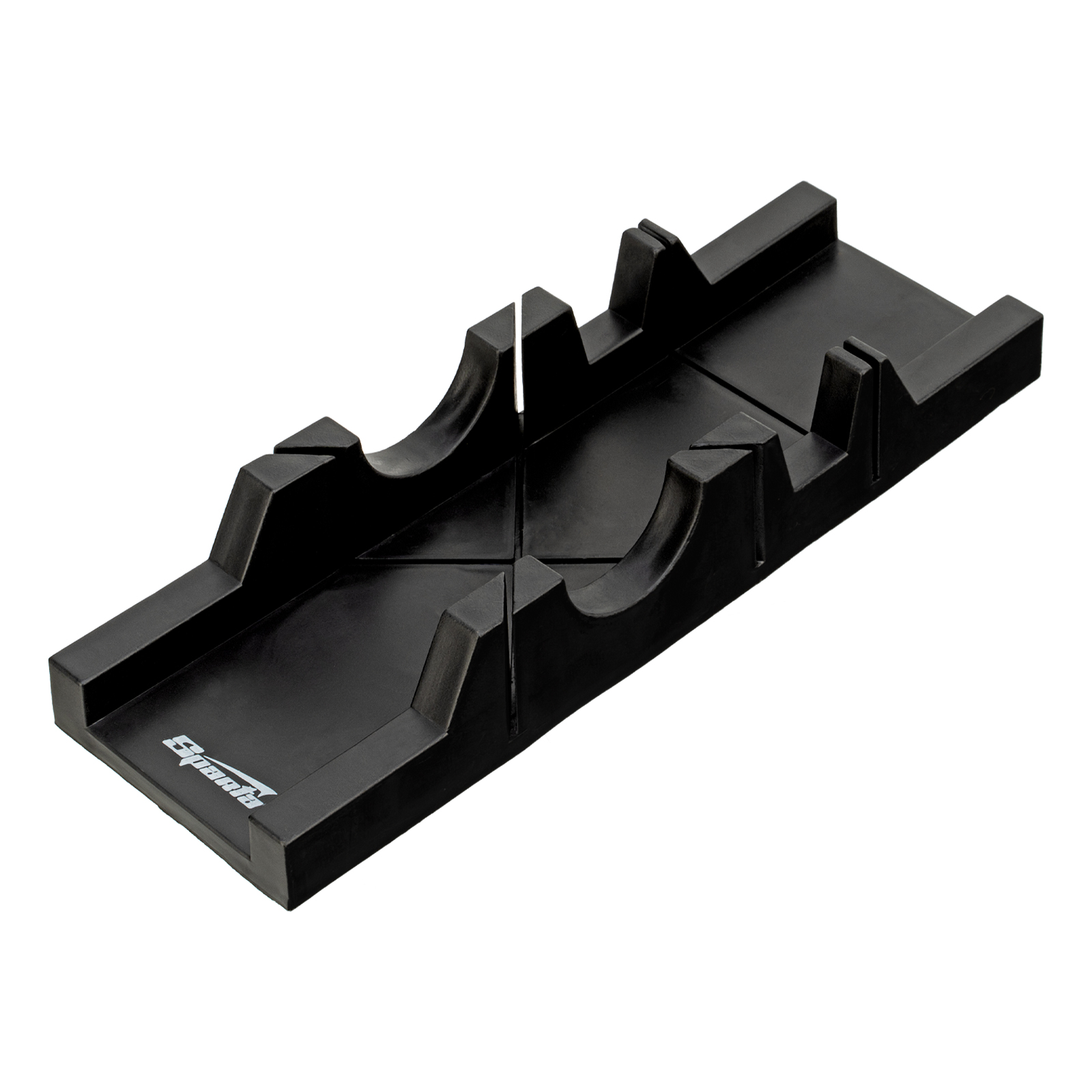 Пластиковое стусло Sparta 225307, 300 х 65 мм, в комплекте с пилой 300 мм, пригодится для резки плинтусов, вагонки, ламината и других материалов шириной до 65 мм и толщиной до 40 мм. Оно позволяет установить детали для их последующего распила под углом 45 и 90 градусов.