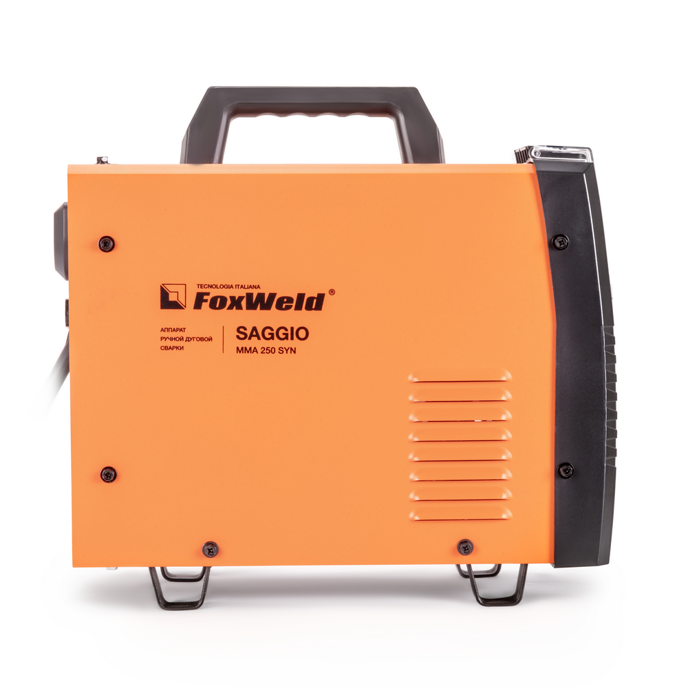Сварочный аппарат SAGGIO ММА 250 SYN с синергетическим режимом управления предназначен для ручной дуговой сварки (ММА) любыми типами электродов и выполнен по новейшей IGBT технологии, позволяющей добиться минимального веса и габаритов. SAGGIO ММА 250 SYN отличается надёжностью, хорошими техническими характеристиками, имеет программно-установленные функции AntiSticking (антизалипание), регулируемые Нot Start (горячий старт) и Arc Force (форсаж дуги), и устойчиво работает при понижении напряжения сети, что делает аппарат более универсальным и практичным. Синергетическая система управления позволяет легко и быстро настроить аппарат по диаметру сварочного электрода. Дополнительный режим TIG LIFT позволяет проводить аргонодуговую сварку на постоянном токе изделий из черной и нержавеющей стали, меди, титана, чугуна. Данный вид сварки характеризуется отсутствием брызг и более презентабельным внешним видом сварного шва. Для проведения аргонодуговой сварки необходимо дополнительно приобрести горелку с вентилем, баллон с газом и присадочную проволоку.МНОГОФУНКЦИОНАЛЬНОСТЬ 2-В-1: Помимо ручной дуговой сварки (MMA), вторым режимом работы аппарата SAGGIO ММА 250 SYN является сварка вольфрамовым электродом TIG LIFT, что позволяет проводить аргонодуговую сварку на постоянном токе изделий из черной и нержавеющей стали, меди, титана, чугуна. Данный вид сварки характеризуется отсутствием брызг и более презентабельным внешним видом сварного шва. Для проведения аргонодуговой сварки необходимо дополнительно приобрести горелку с вентилем (артикул 2586).СИНЕРГЕТИЧЕСКИЙ РЕЖИМ УПРАВЛЕНИЯ: Режим синергетики позволяет сэкономить время и получить качественное сварное соединение даже новичку, так как основные параметры подбираются автоматически с возможностью тонкой ручной подстройки сварочного процесса. Синергетику можно отключить для работы в ручном режиме.ИНФОРМАТИВНАЯ ПАНЕЛЬ УПРАВЛЕНИЯ: Удобная настройка режимов сварки с помощью информативной панели управления и LCD экрана. В аппарате большое количество функций и опций, которые настраиваются с помощью специальных кнопок. На цифровом дисплее отображаются действующие значения сварочного тока и напряжения в процессе сварки и параметры сварки в режиме настройки.СНИЖЕНИЕ НАПРЯЖЕНИЯ ХОЛОСТОГО ХОДА: Функция VRD (снижение напряжения холостого хода) повышает безопасность и исключает риск поражения сварщика электрическим током. Сварочный процесс становится более безопасным в замкнутых пространствах и при сварке в условиях повышенной влажности.РАЗЪЁМ ДУ: Инвертор имеет возможность подключения пульта дистанционного управления, что позволяет регулировать сварочный ток непосредственно вблизи проведения сварочных работ даже при большой длине сварочных кабелей.ПРЕИМУЩЕСТВА:Профессиональная реализация всех трёх сервисных функционалов: Antisticking (Антизалипание), регулируемые Hot Start (Горячий старт) и Arc Force (Форсаж дуги)Большой экран с чётким отражением параметров сваркиБайонеты профессионального уровня размером 35-50Мощный и производительный вентиляторРежим TIG LIFTИнвертор на транзисторах IGBTВоздушное охлаждениеРабота при пониженном напряженииФУНКЦИОНАЛЬНЫЕ ОСОБЕННОСТИ:РЕЖИМ MMA: Работает с входным напряжением от 150 до 270 вольт;Может работать с диаметром покрытого электрода до 5 мм;Выставляется ток сварки от 20 до 250 ампер;Аппар