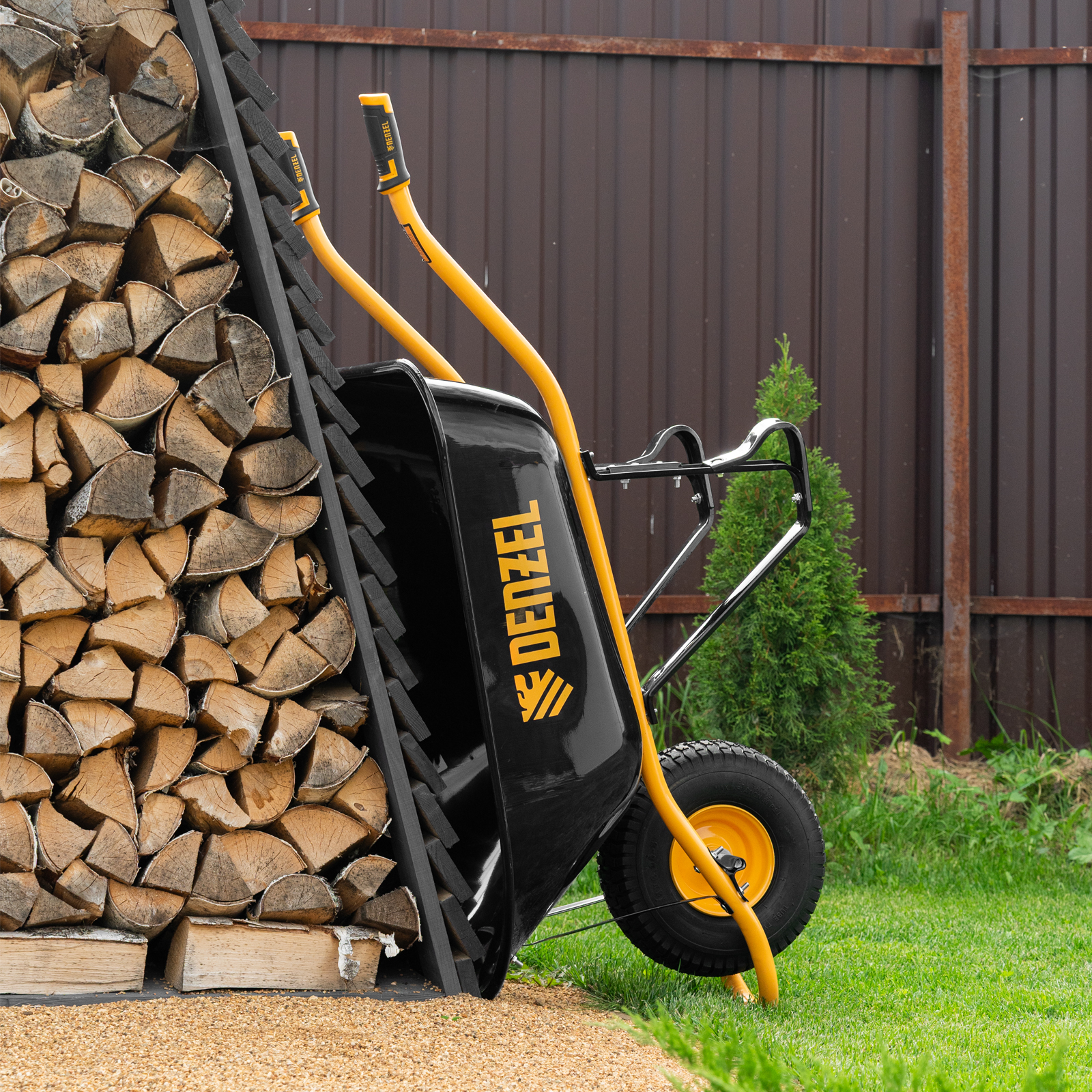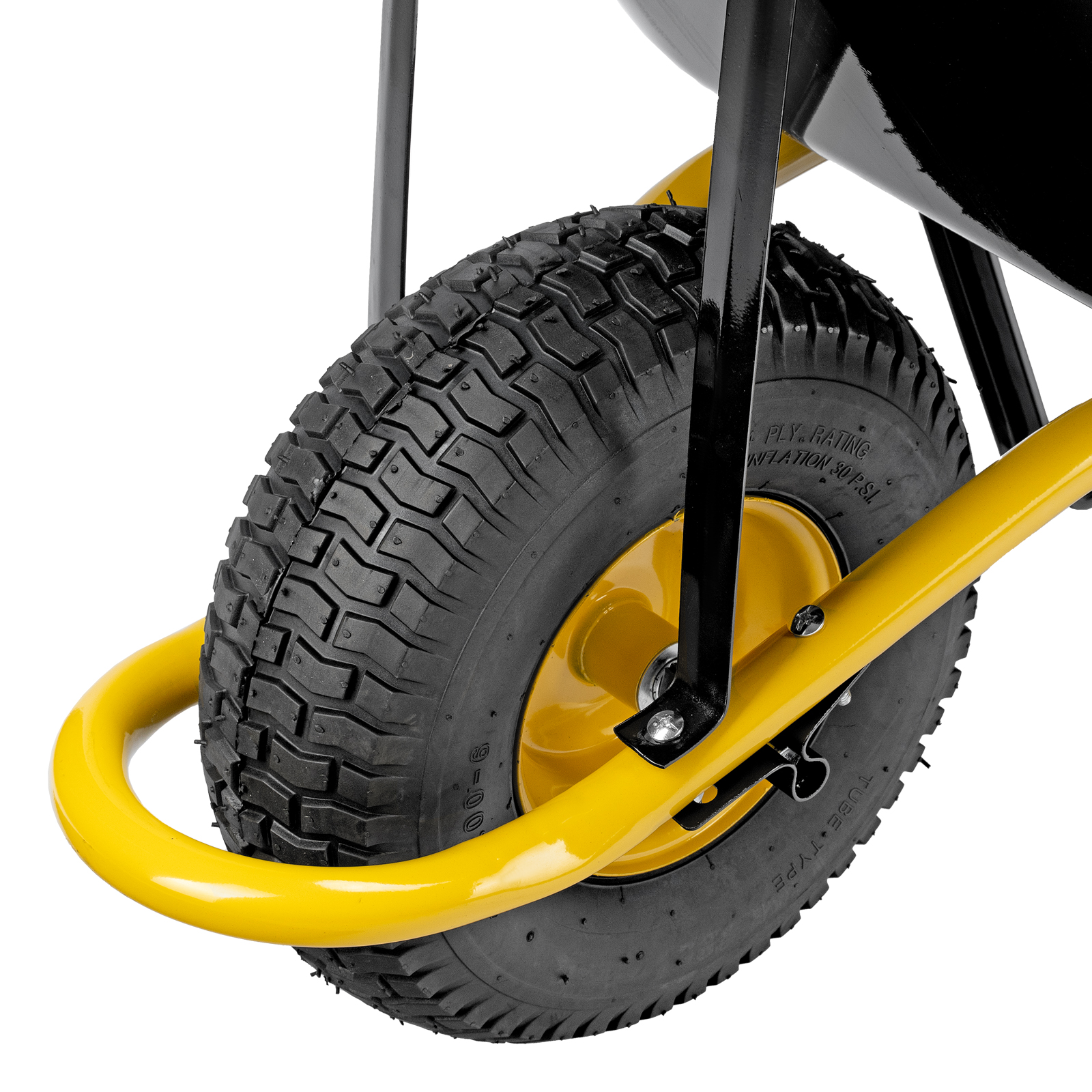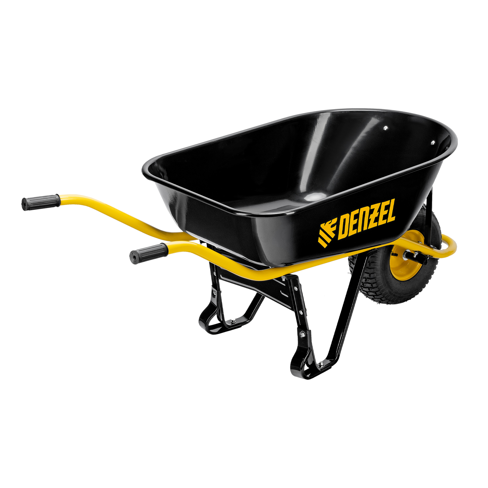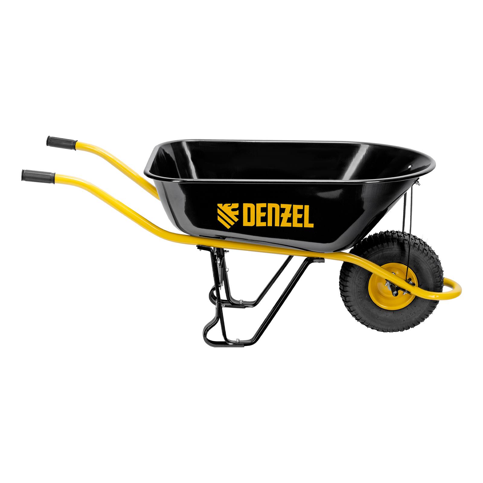 • Устойчивость — тачка не проваливается в грунт благодаря широкому пневматическому колесу и подпятникам на ножках.