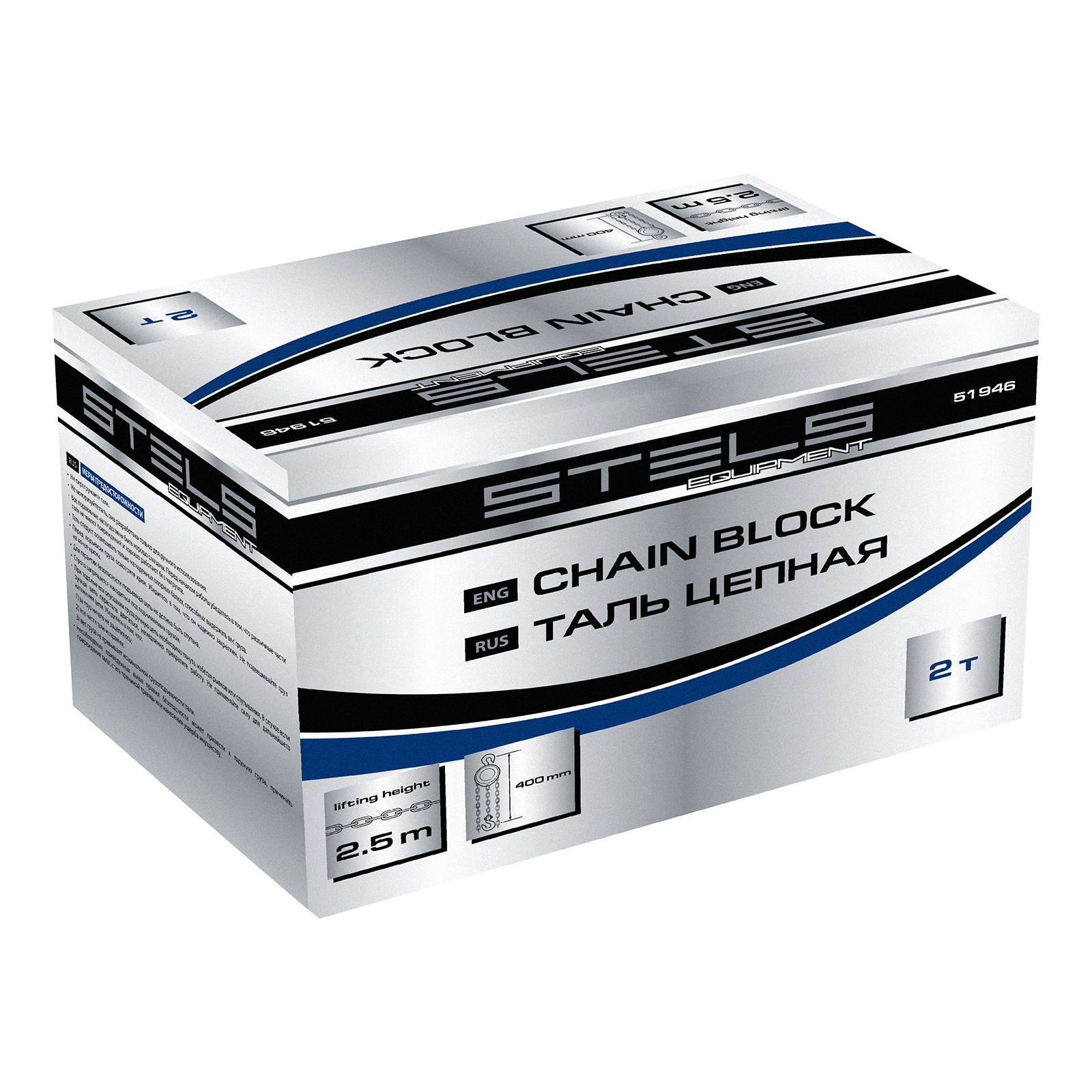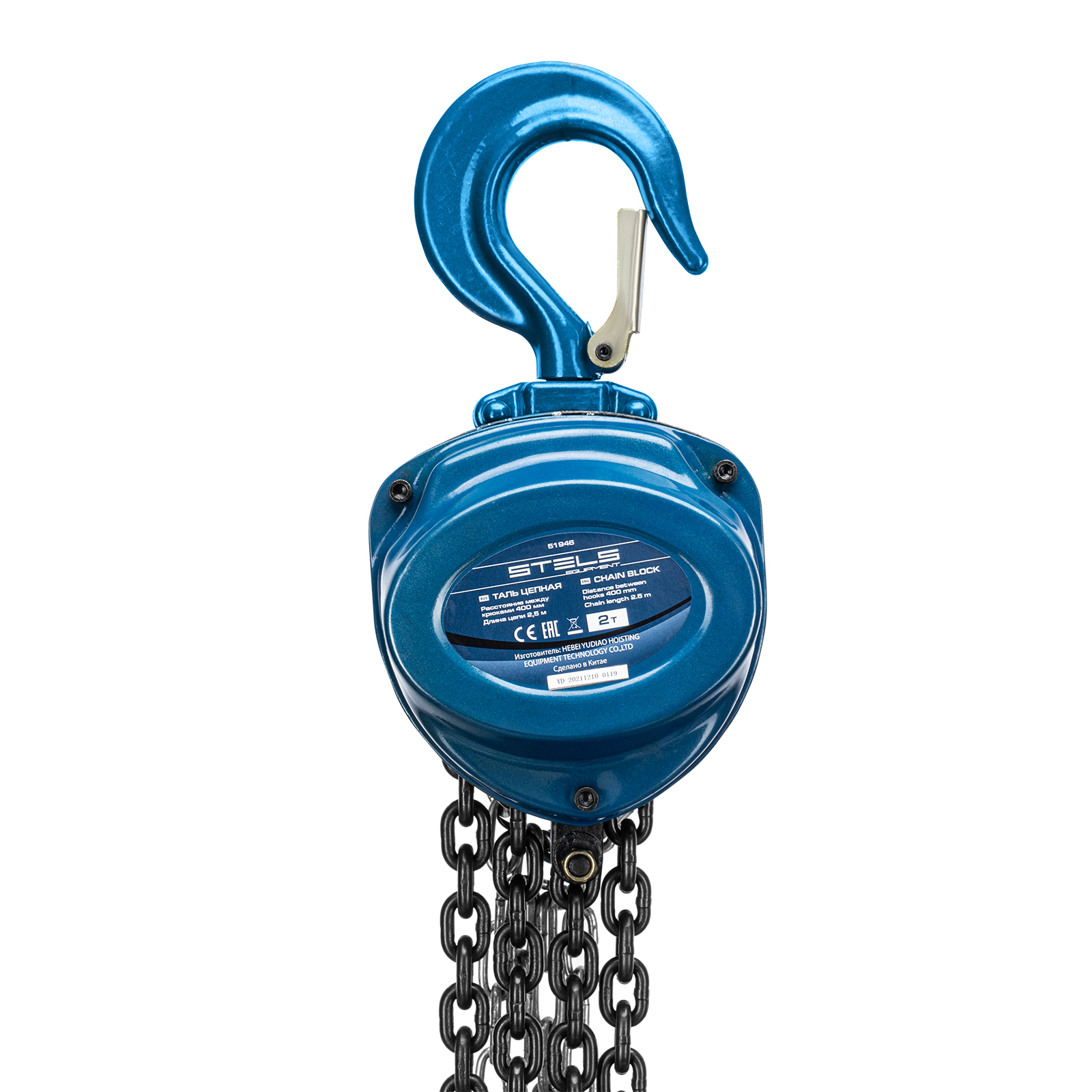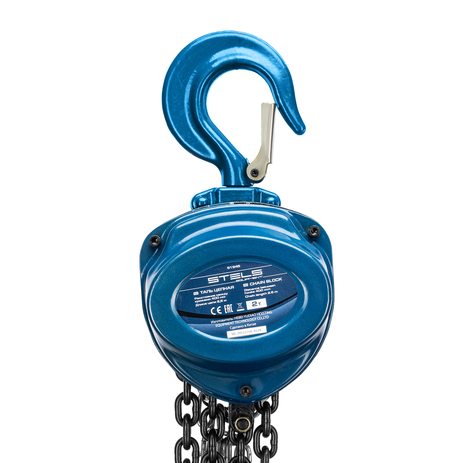 Таль цепная, 2 т, h подъема 2.5 м, расстояние между крюками 400 мм Stels
