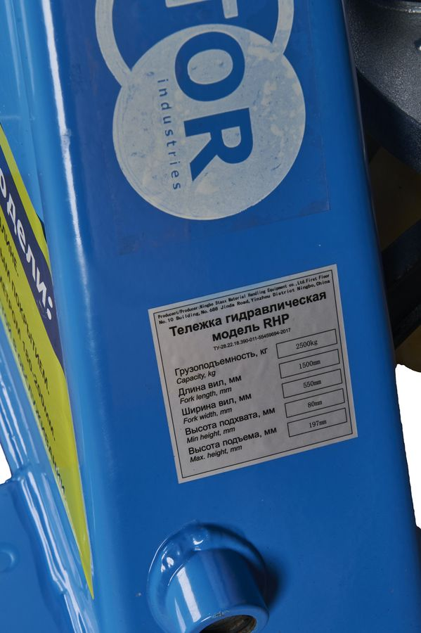 Тележка гидравлическая 2500 кг 1500 мм нейлоновые колеса TOR RHP
