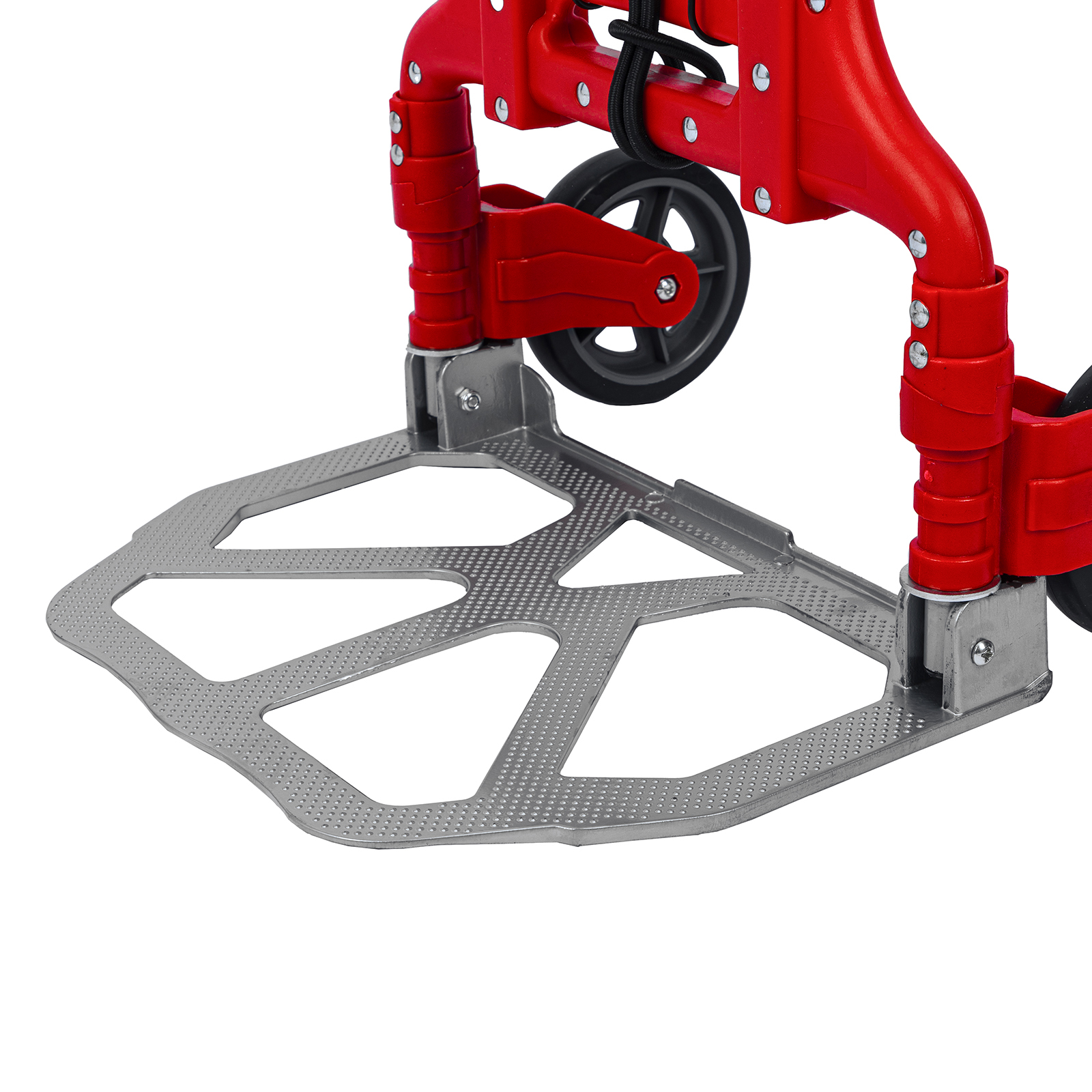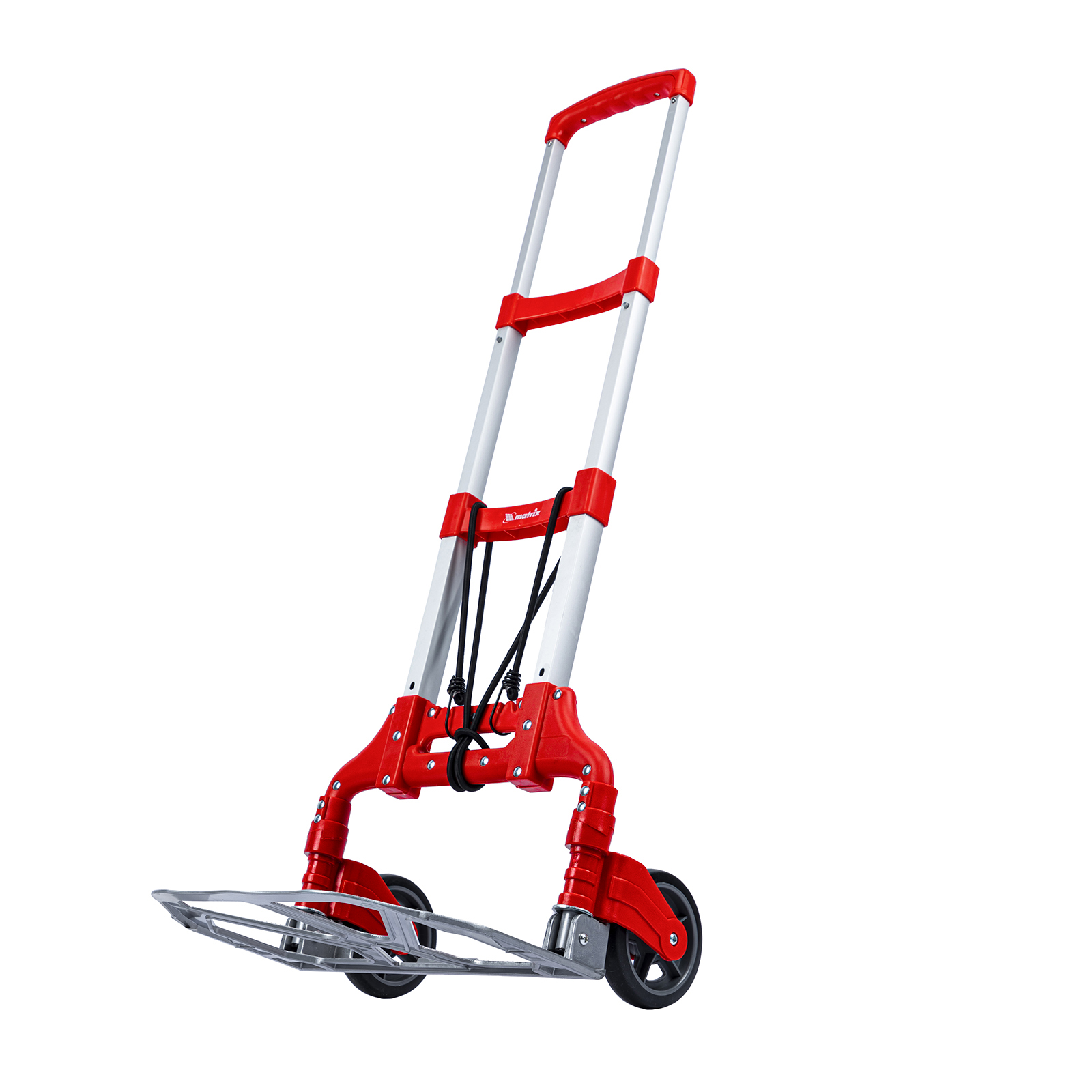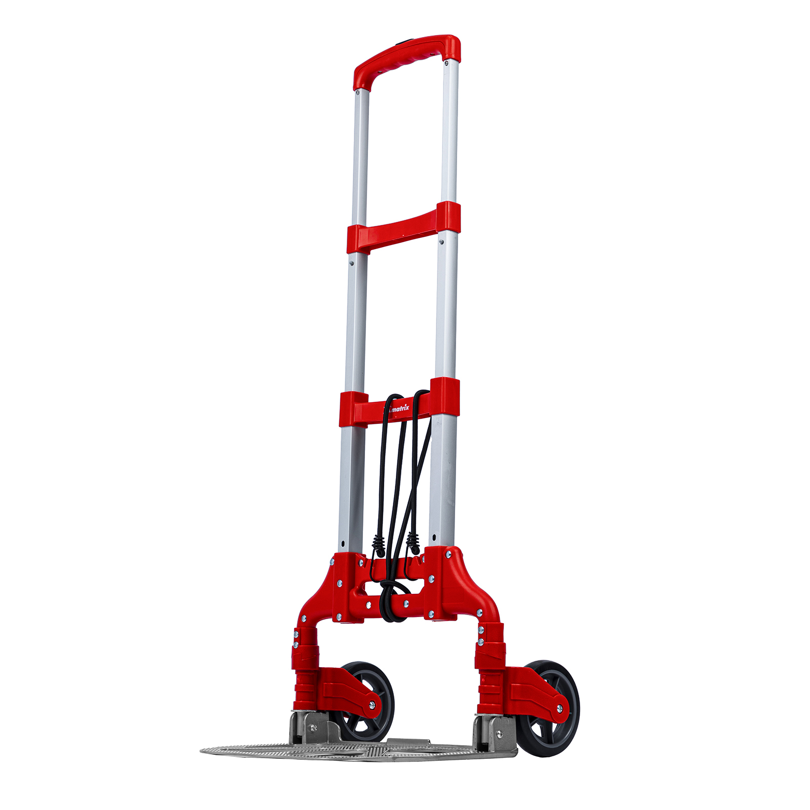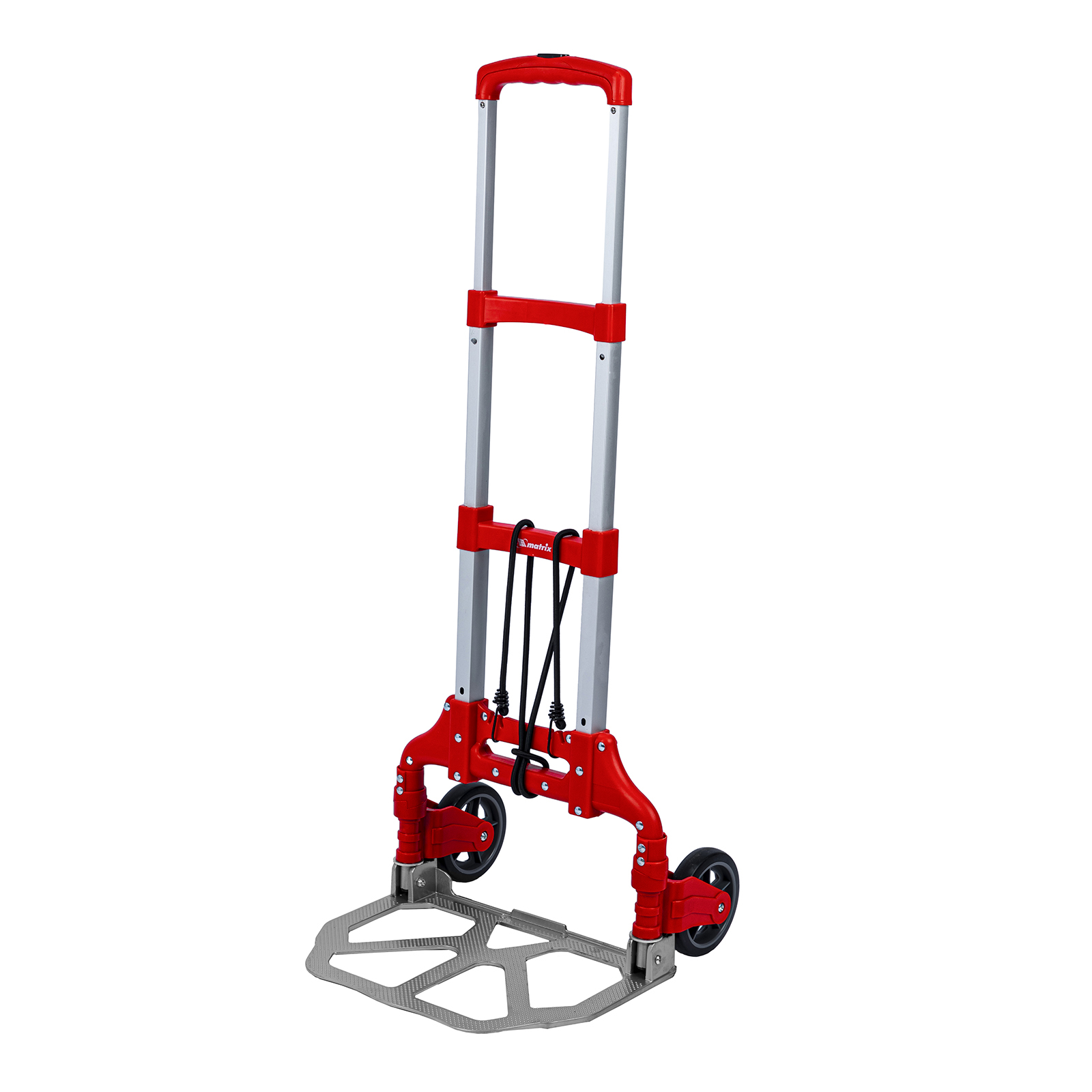 • Удобное хранение и транспортировка — платформа и колеса складываются, поэтому тележка не занимает много места.