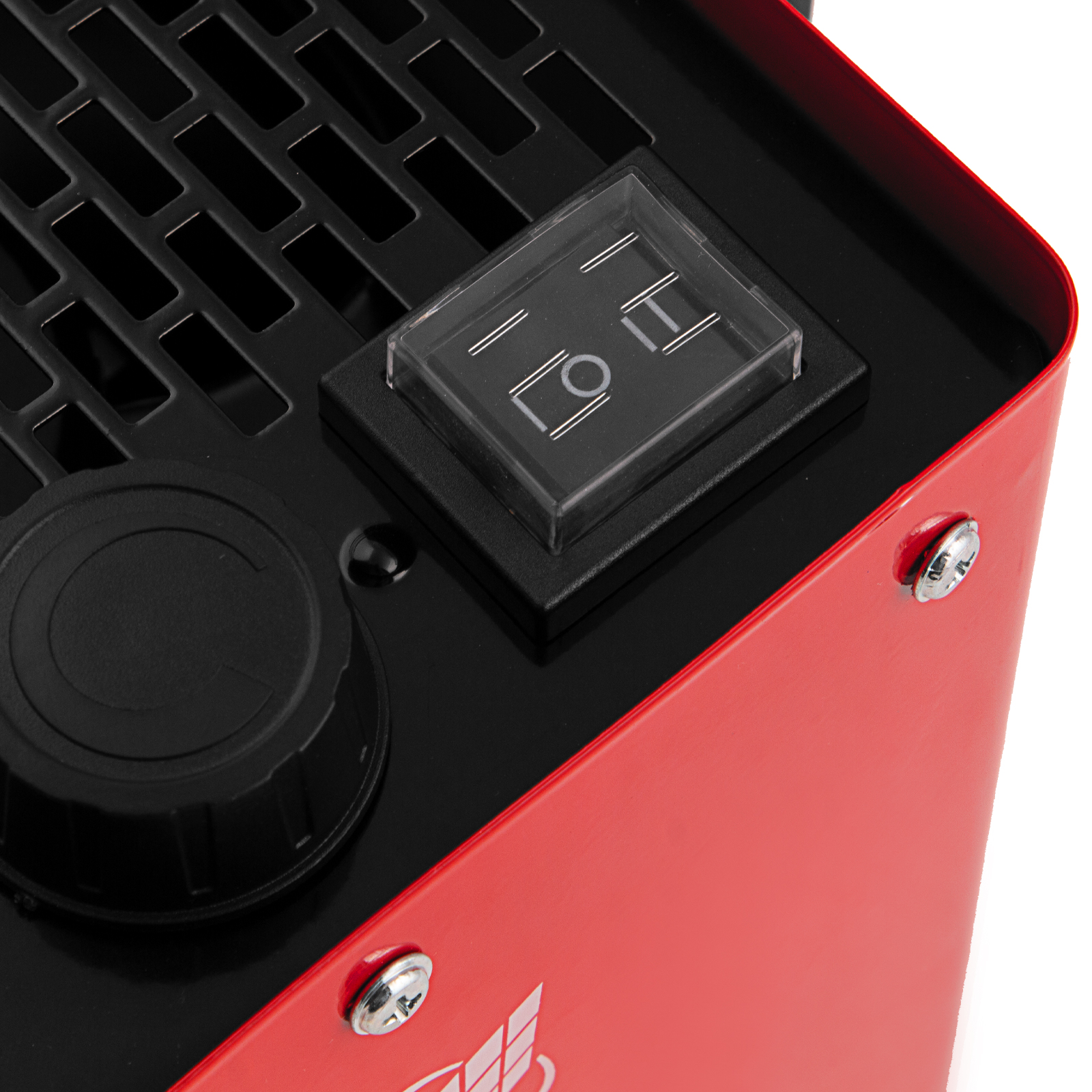 - 3 режима работы — вентиляция, обогрев на мощности 1 кВт и обогрев на полной мощности 2 кВт.