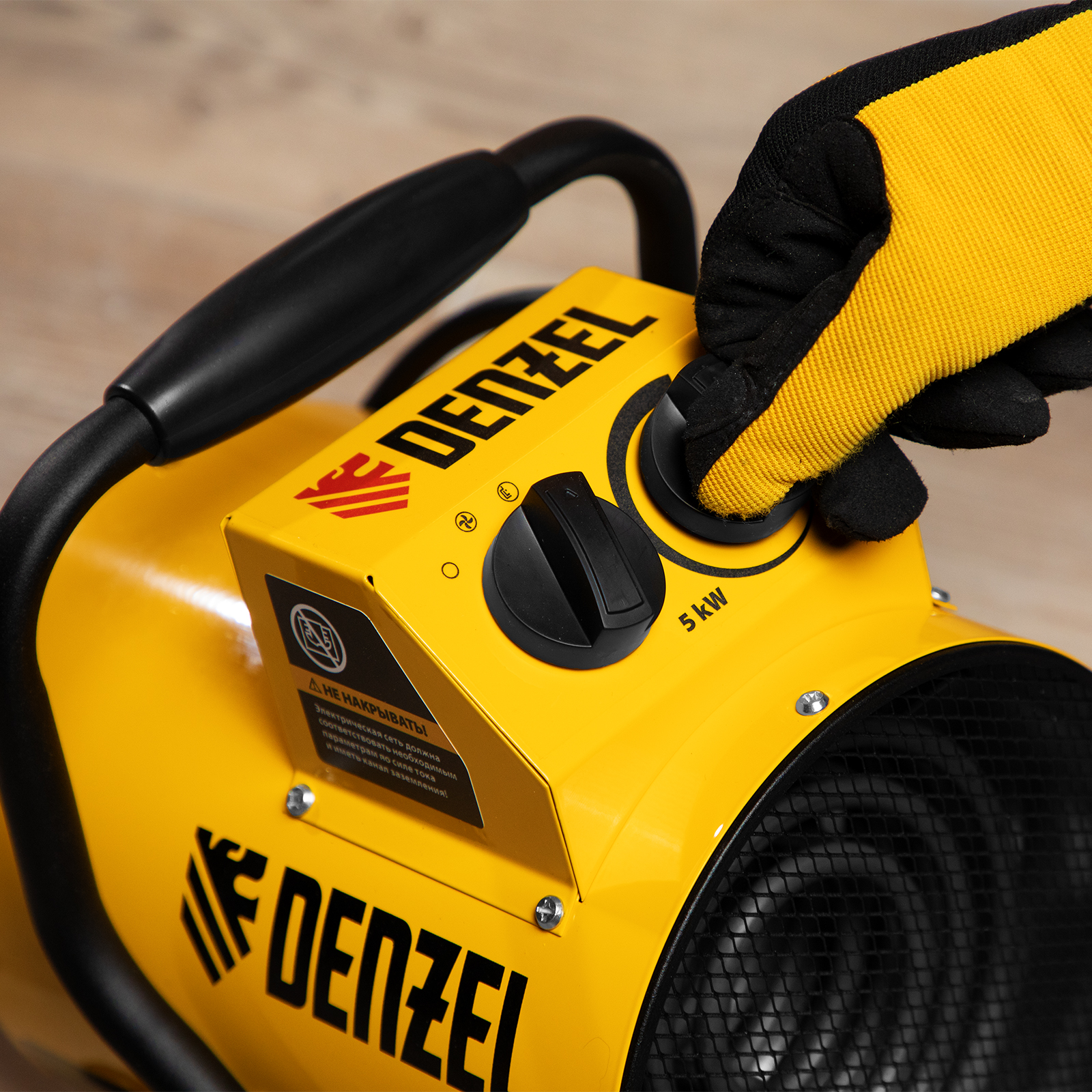 Тепловая пушка профессиональной серии Denzel SFH-5000 96438 питается от сети 230 В и генерирует воздушный поток мощностью 260 м³/ч. Работает в одном из 3 режимов: вентилятор, обогрев на мощности 2250 и обогрев на мощности 4500 Вт. Используется в складских, производственных, общественных помещениях площадью до 45 м². Подходит для дистанционной просушки поверхностей, например, окрашенных или оштукатуренных стен во время отделочных работ.