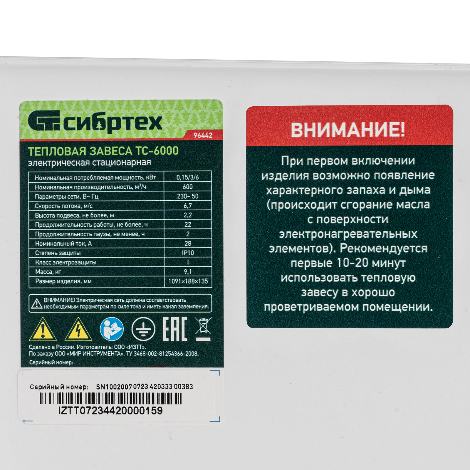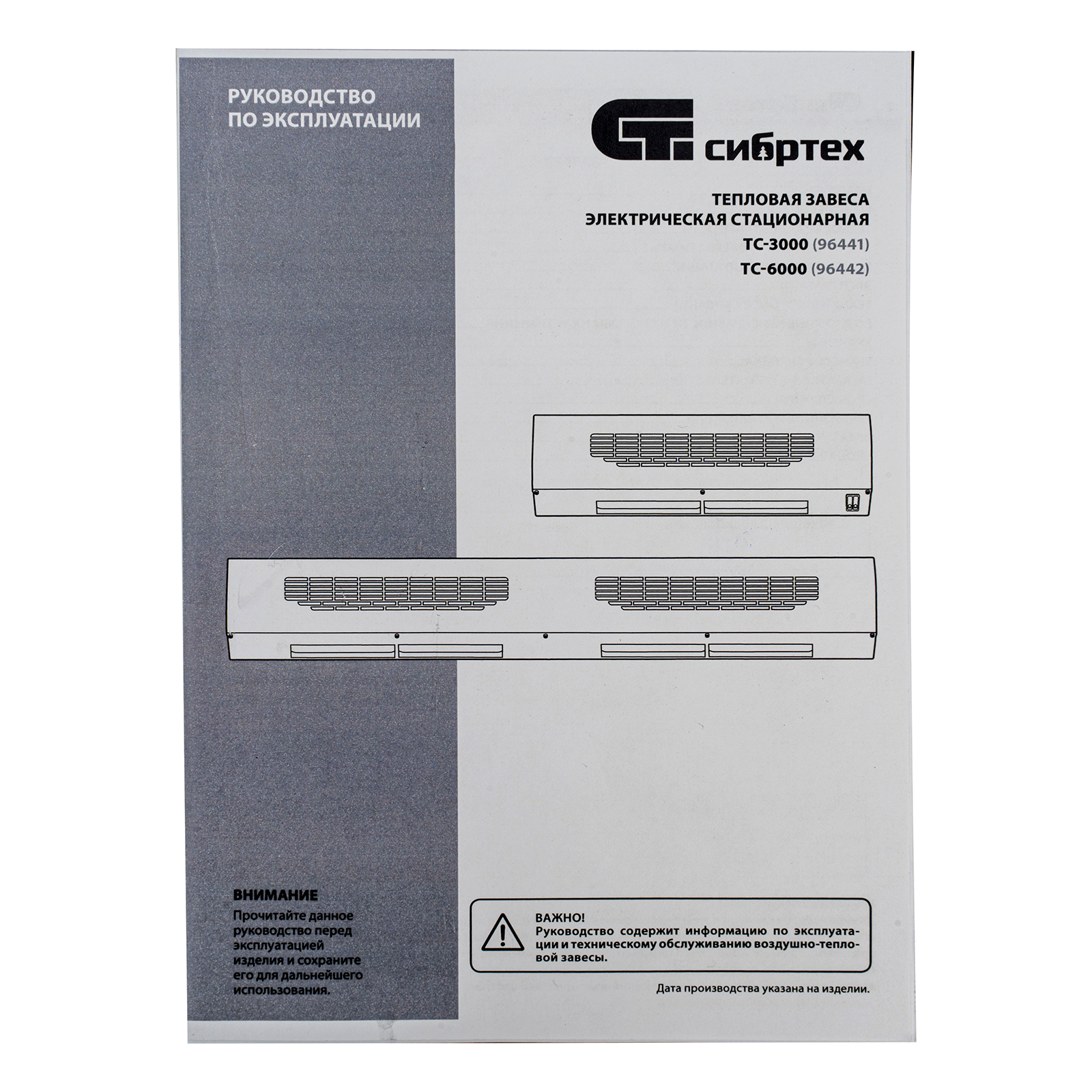 Тепловая завеса ТС-6000 (тепловентилятор) 230 В, 3 режима, 3000/6000 Вт Сибртех в Москве