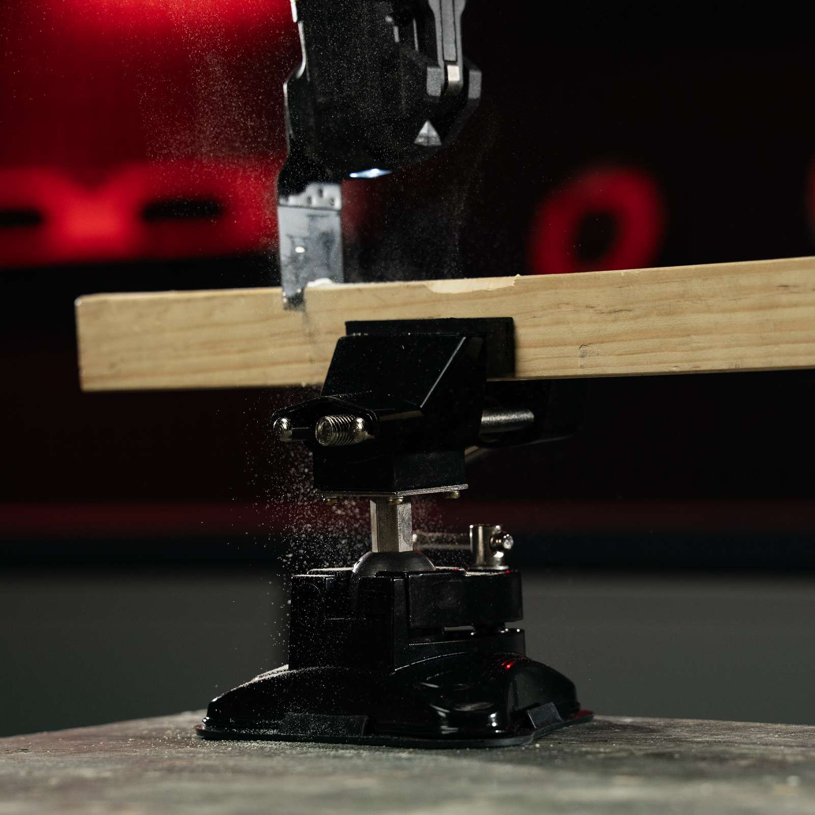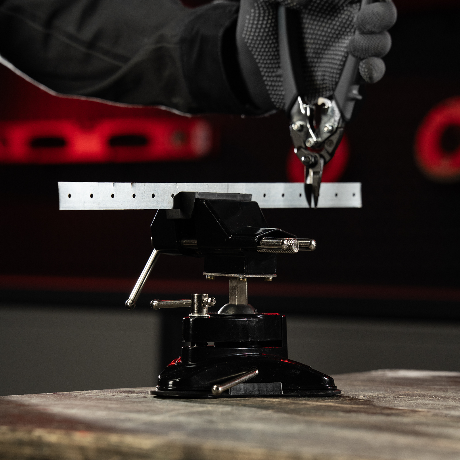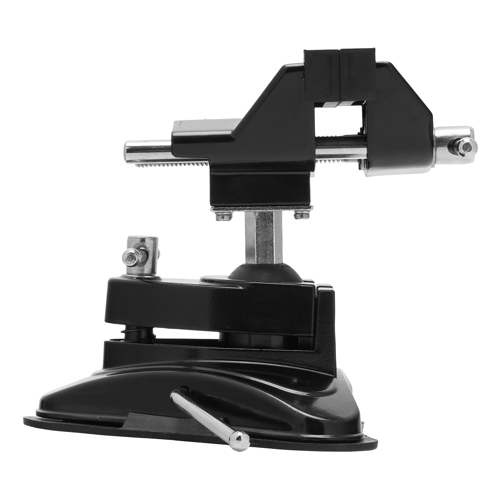 - Надежная фиксация на ровных поверхностях любого типа — тиски оснащены резиновой вакуумной присоской.