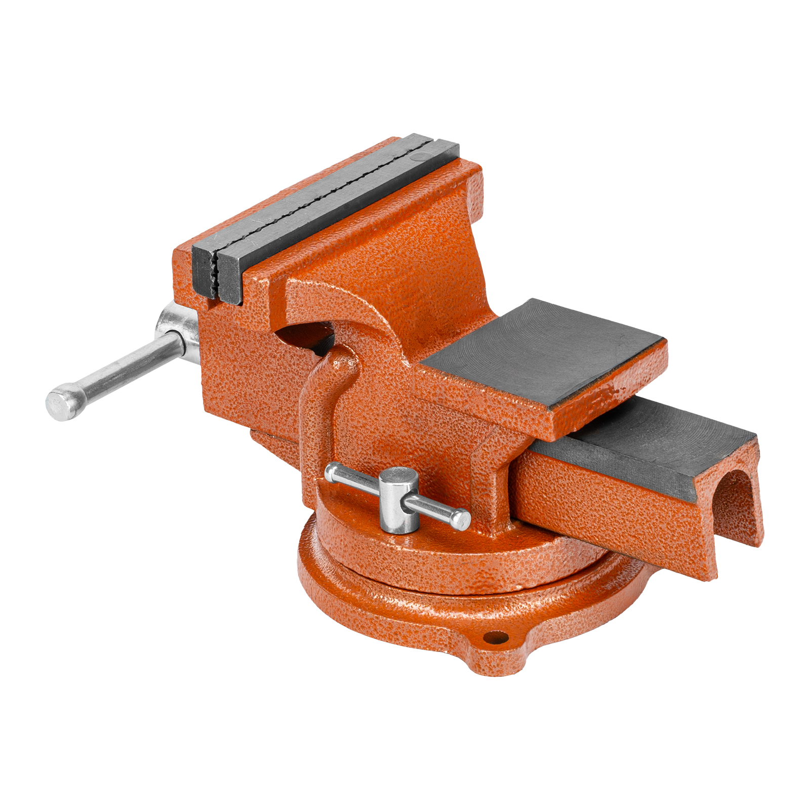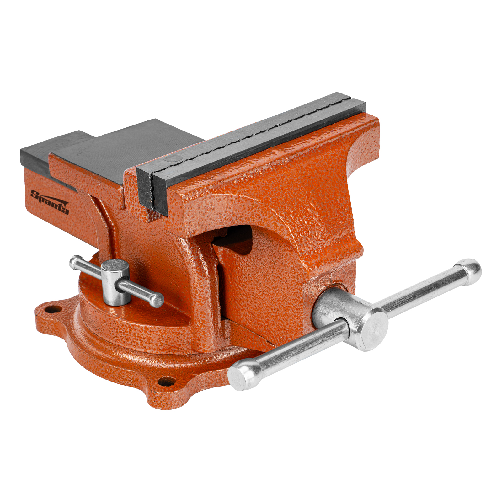 Поворотные слесарные тиски Sparta 186255 с наковальней, ширина губок 125 мм, — это небольшой инструмент для захвата деталей до 75 мм. Будут полезны в частной мастерской или гараже для удобства обработки малогабаритных заготовок.