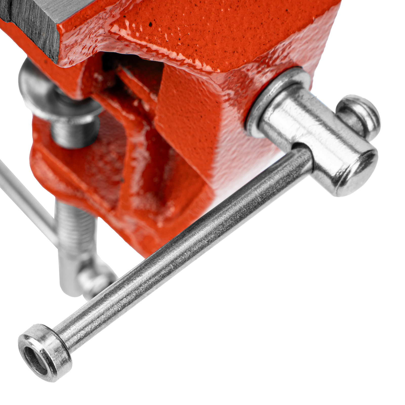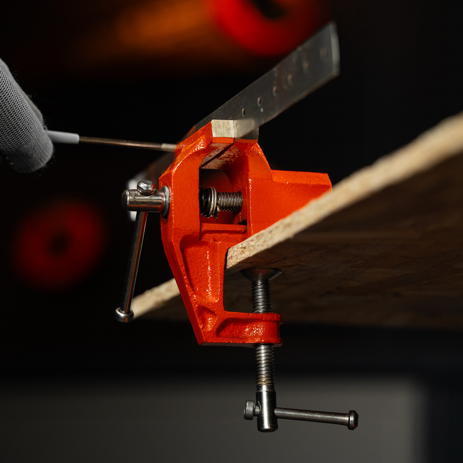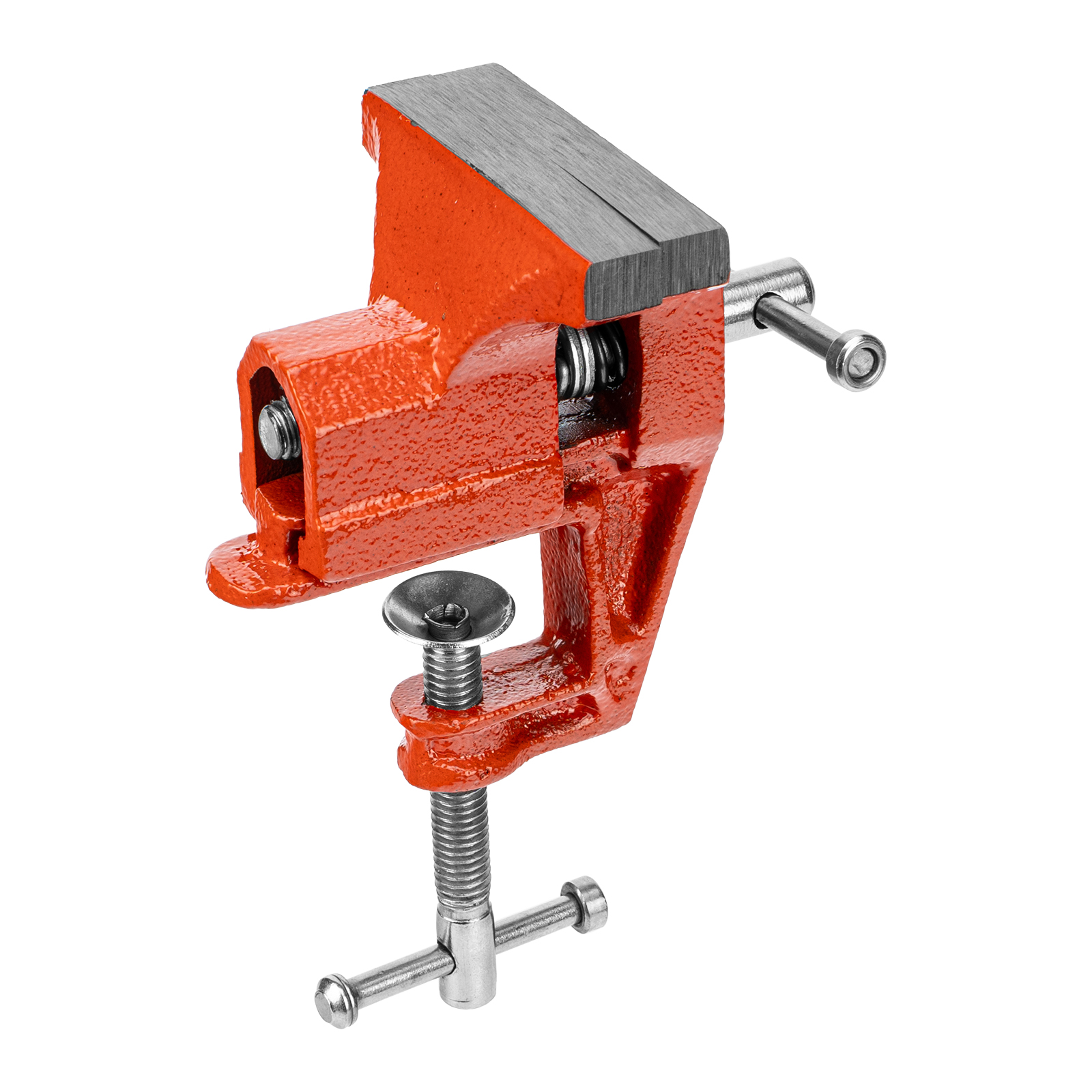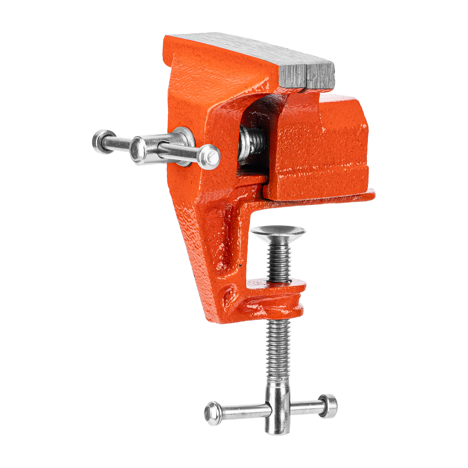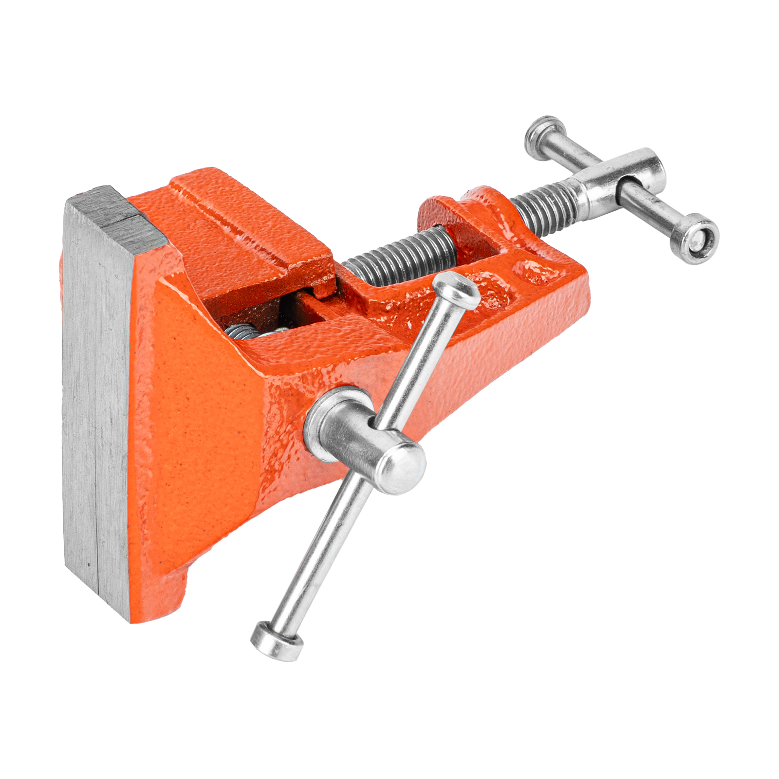 - Простое использование — винтовой зажимной механизм позволяет легко устанавливать и снимать тиски с рабочего стола.