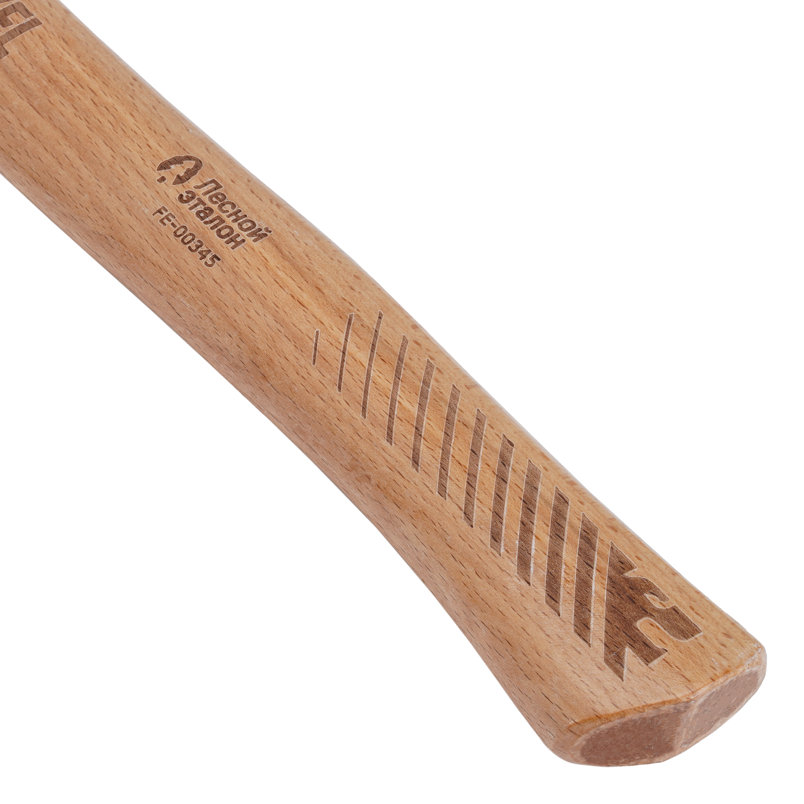 - Прочность — топорище изготовлено из твердой древесины бука и покрыто защитным лаком для предотвращения рассыхания и разбухания.