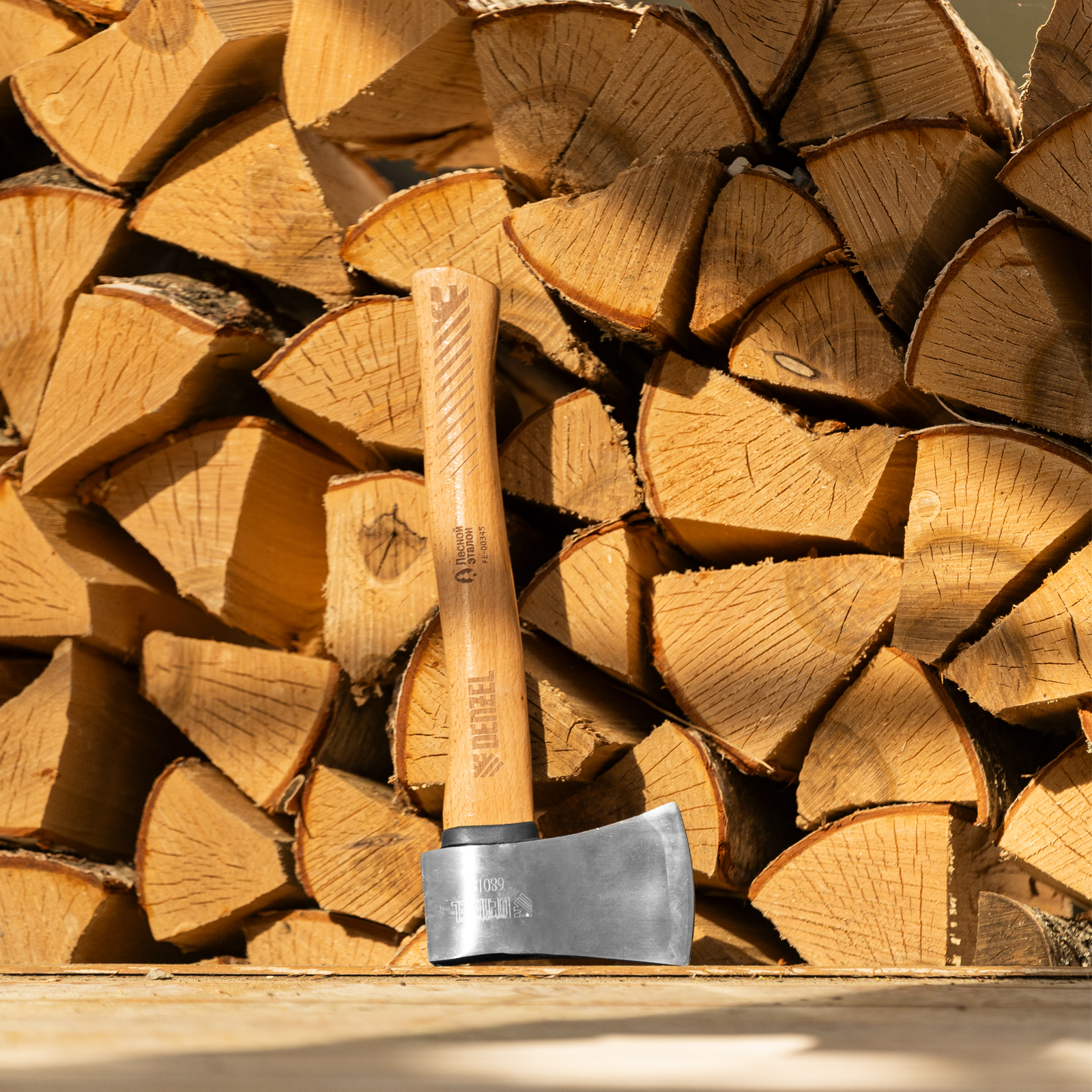 Кованый топор Denzel 21886 американского типа, с полотном весом 680 г и буковой рукояткой, предназначен для рубки и тесания древесины любых пород. Подходит для бытового и профессионального применения, также будет полезен любителям походов, охотникам и рыболовам — благодаря компактным размерам топор удобно брать с собой.