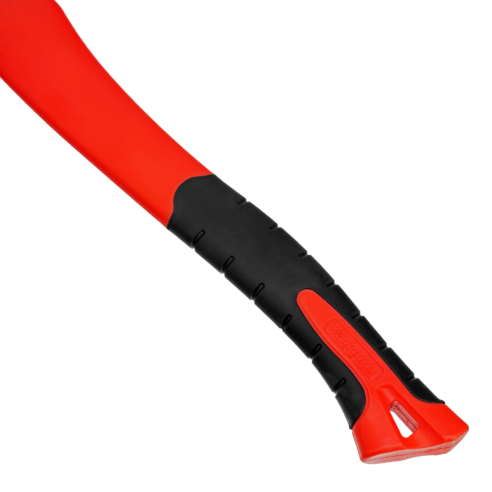 - Комфортная работа — полотно весит 800 г, фибергласовое топорище гасит вибрации, что снижает нагрузку на руки.