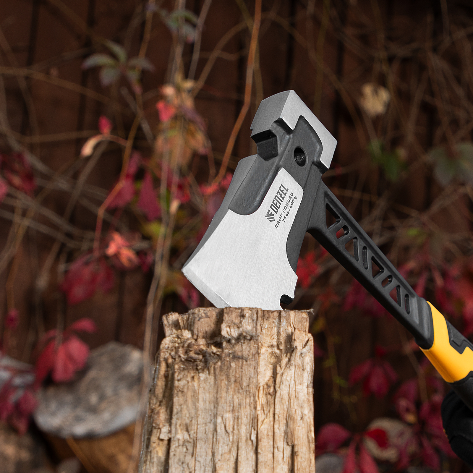 Цельнокованый топор Denzel 21499 с рабочей частью весом 600 г и двухкомпонентной обрезиненной рукояткой предназначен для рубки бревен и веток, колки дров, обработки древесины и т.д. Будет полезен в быту и на строительной площадке.