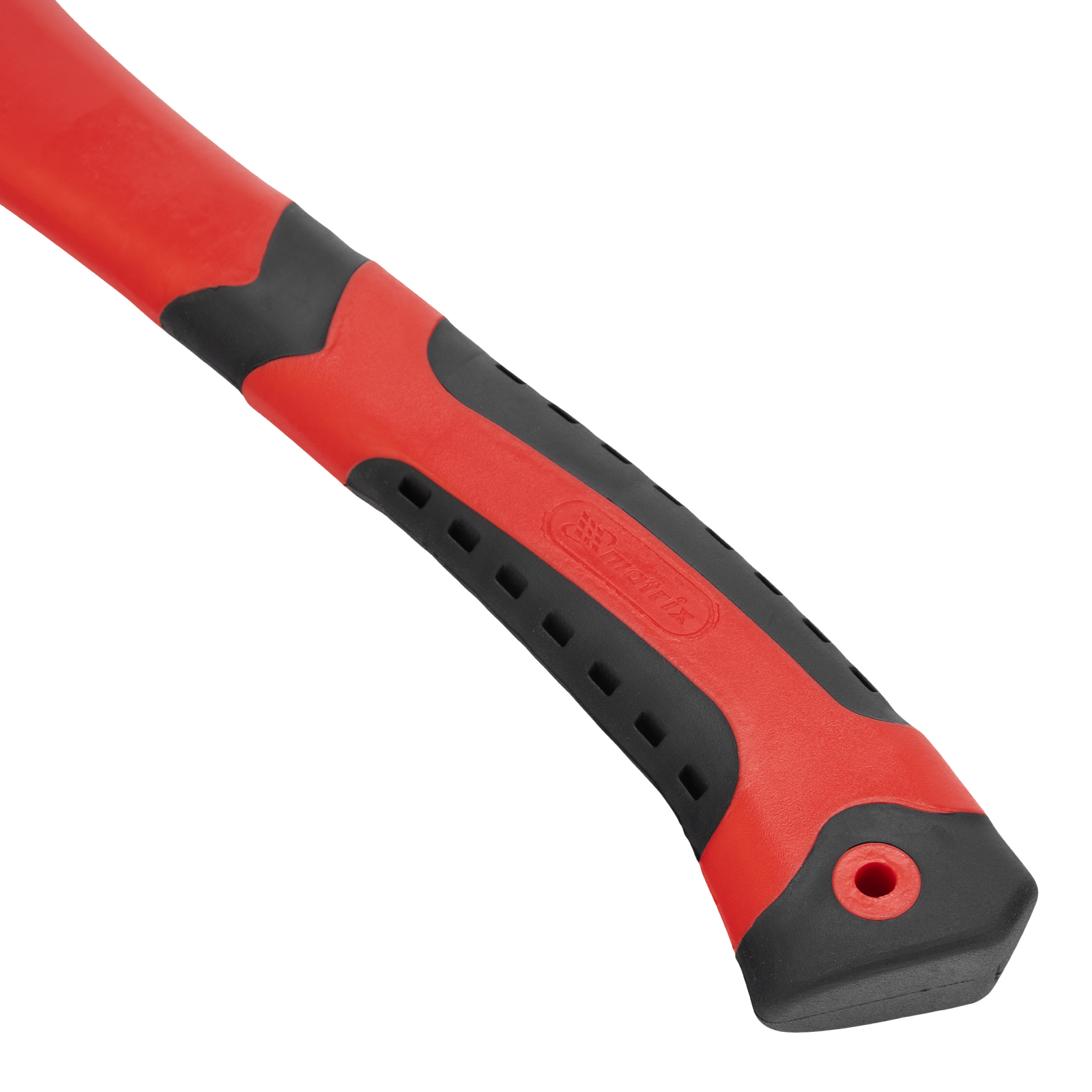 - Комфортная работа — фибергласовое топорище с резиновыми накладками гасит колебания от ударов и не выскальзывает из ладоней, благодаря перфорации на рукоятке руки не потеют во время работы.