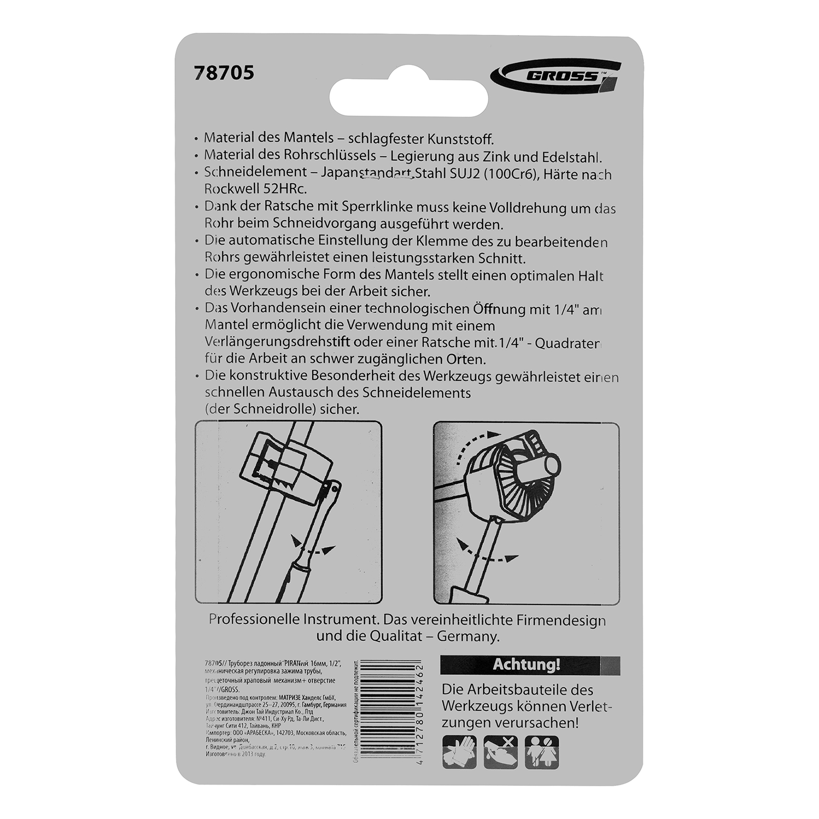 • Высокая производительность — производитель предусмотрел храповой механизм и автоматическую регулировку зажима трубы.