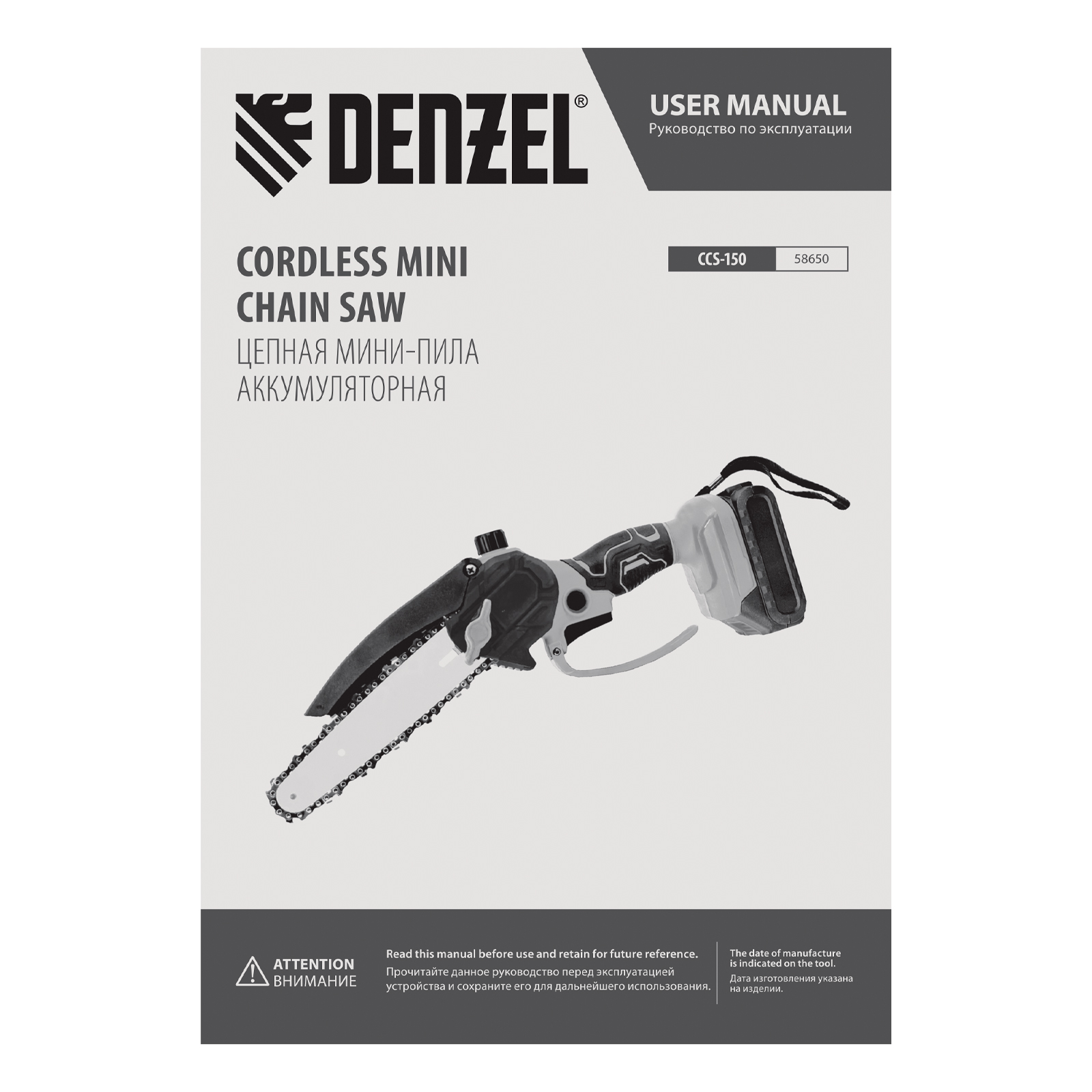 Цепная мини-пила аккумуляторная бесщет., CCS-150, шина 150 мм, Li-Ion, 20 В Denzel в Москве