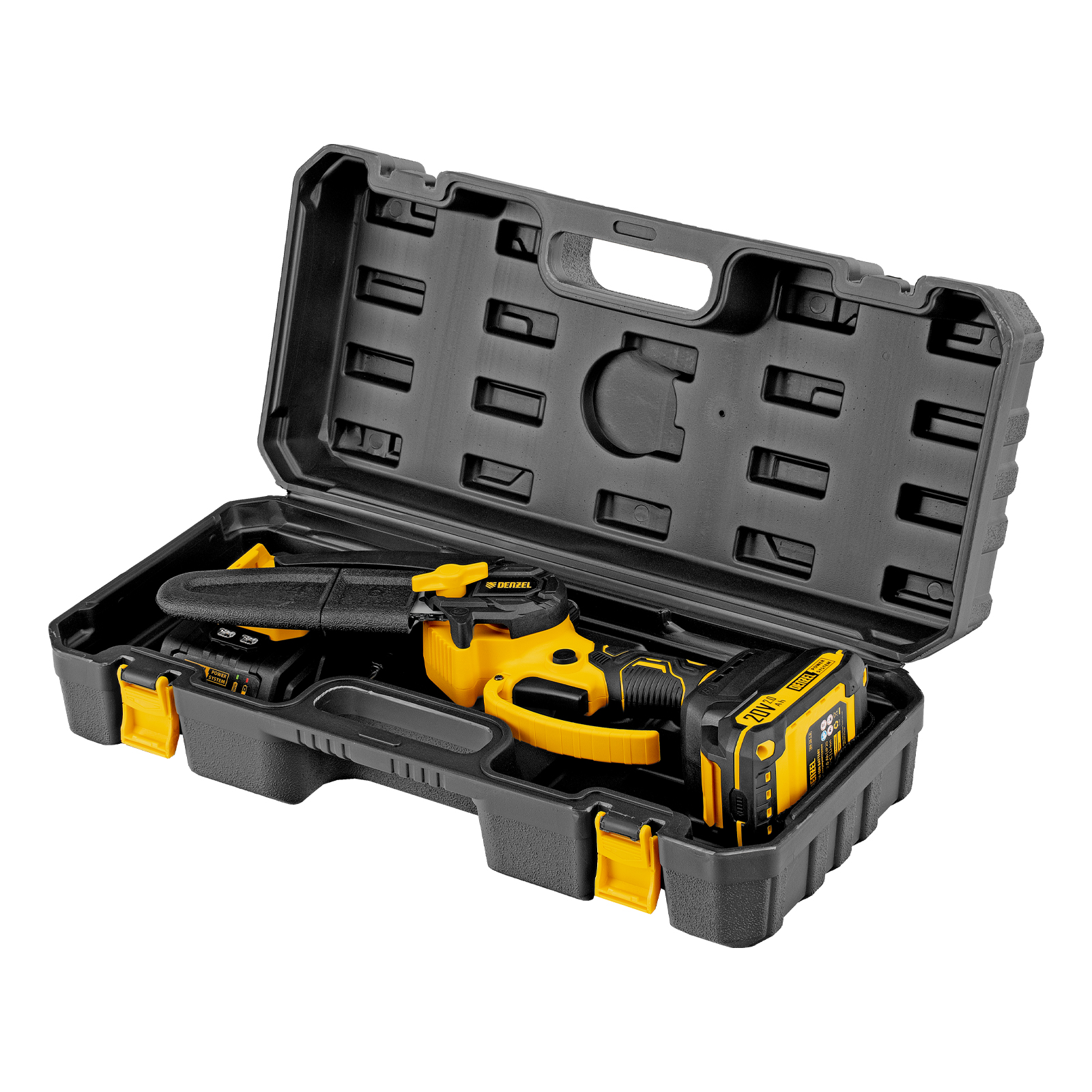 - Универсальность — аккумулятор совместим со всеми инструментами единой платформы Denzel Power System 20V.