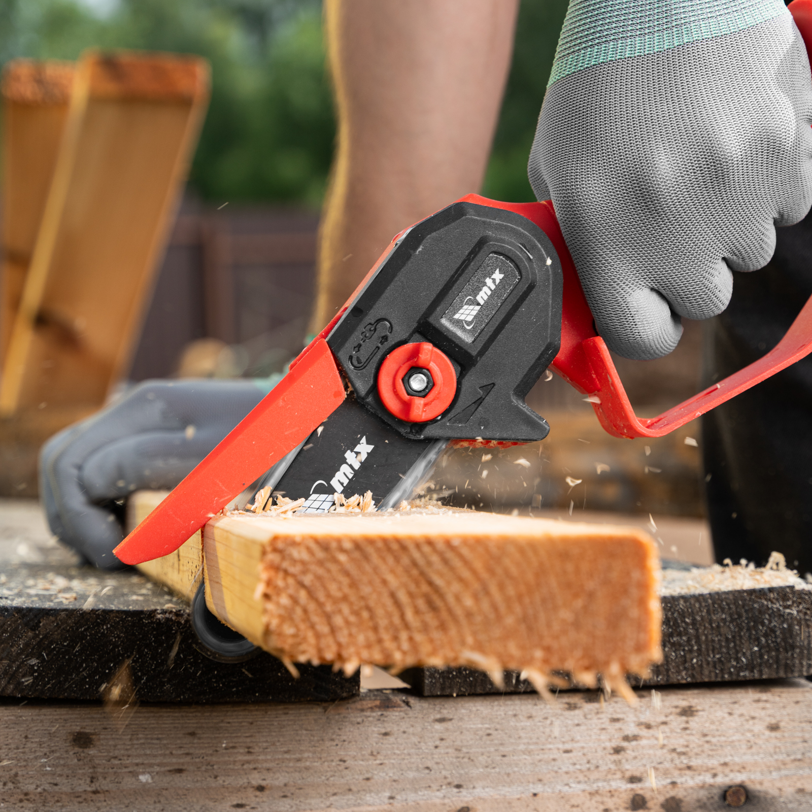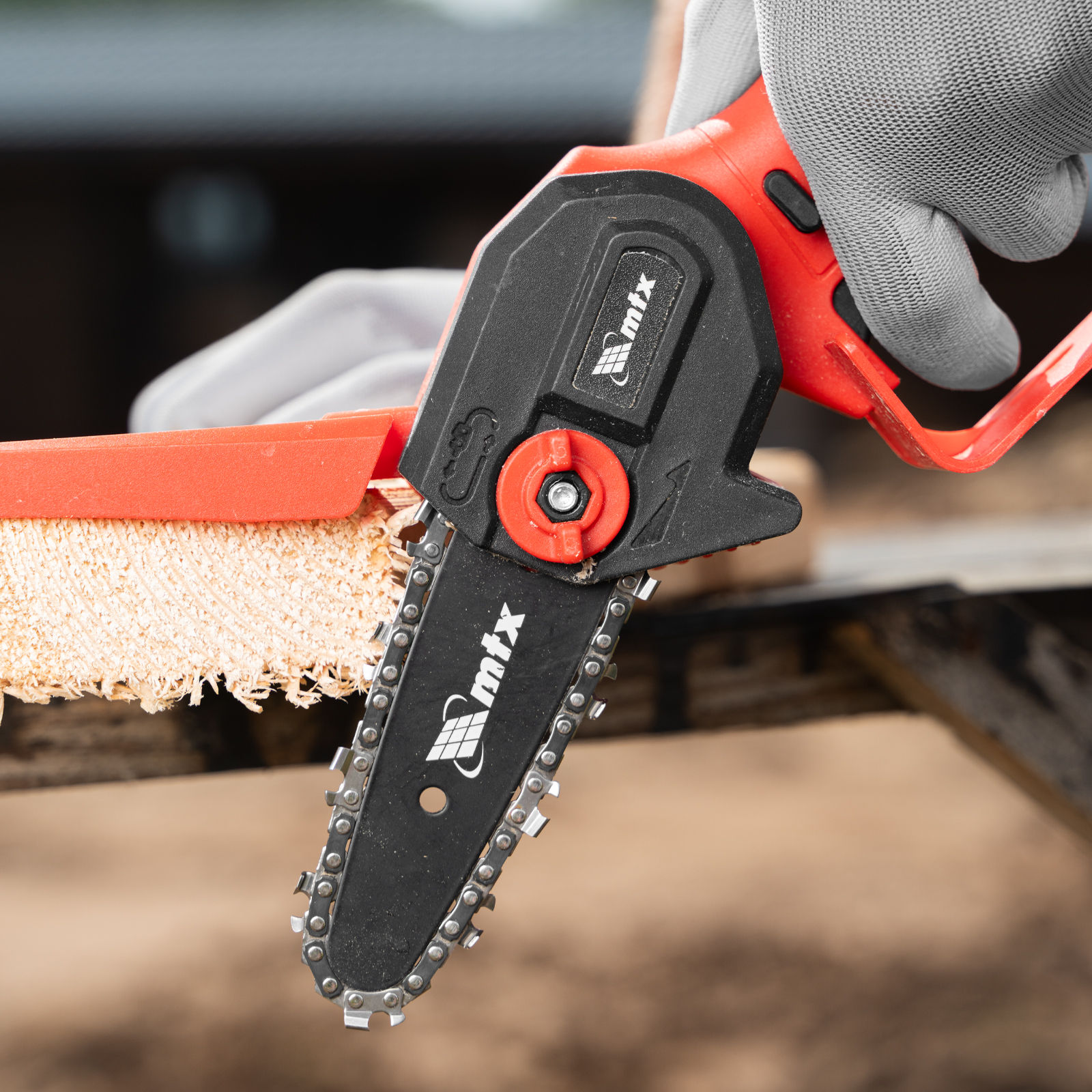Аккумуляторная цепная мини-пила MTX MCS-100 58640 с шиной длиной 100 мм предназначена для отпиливания веток и сучков, а также пиления бруса толщиной до 100 мм. Работает от аккумулятора Li-Ion 20 В емкостью 2 А·ч, пригодится для работы на садовом участке и в мастерской, также пилу удобно брать на выездные работы.