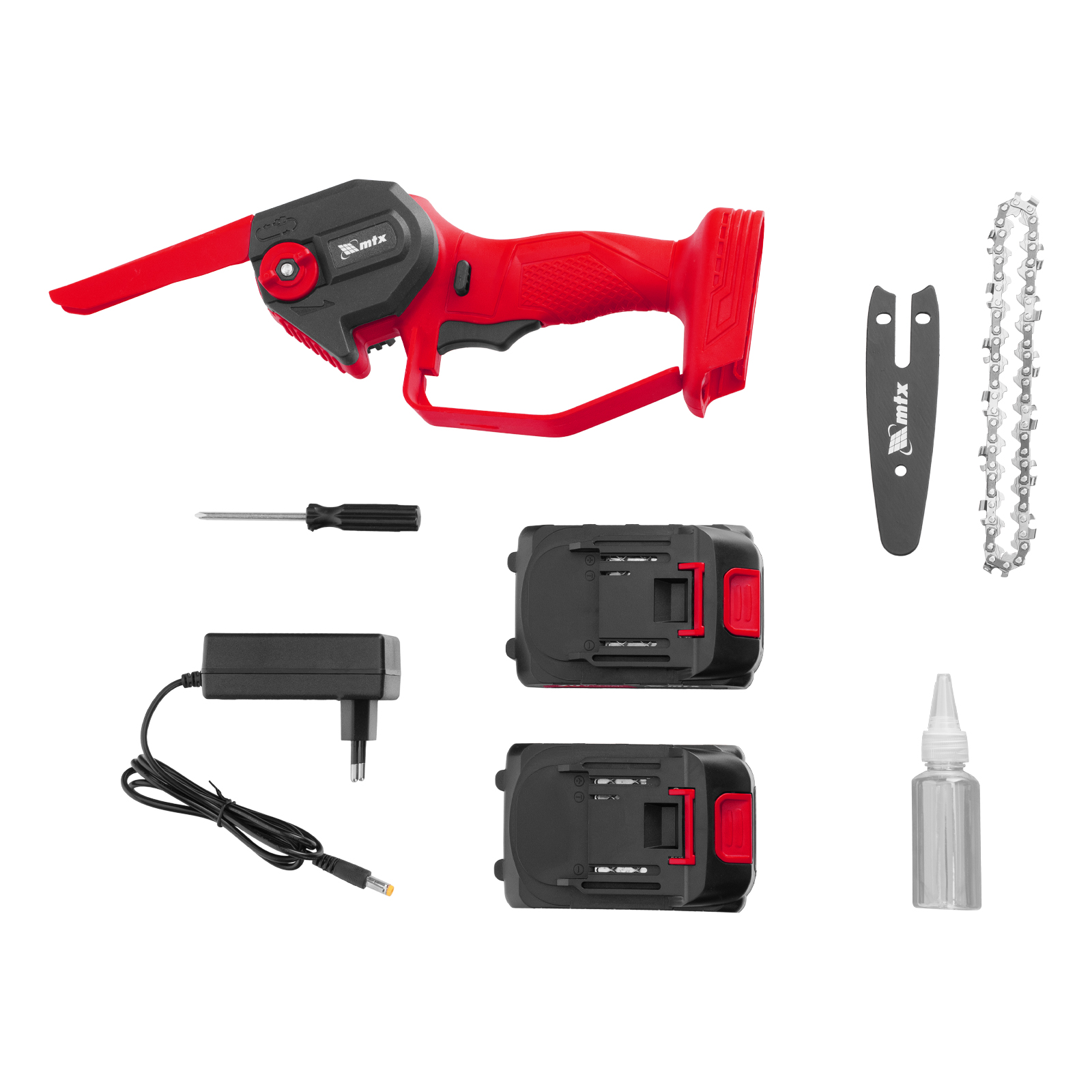 Мини-пила цепная аккумуляторная - 1 штОтвертка - 1 шт,Масленка - 1 штаккумулятор - 2 штЗарядное устройство - 1 штИнструкция по эксплуатации с гарантийным талоном - 1 шт |