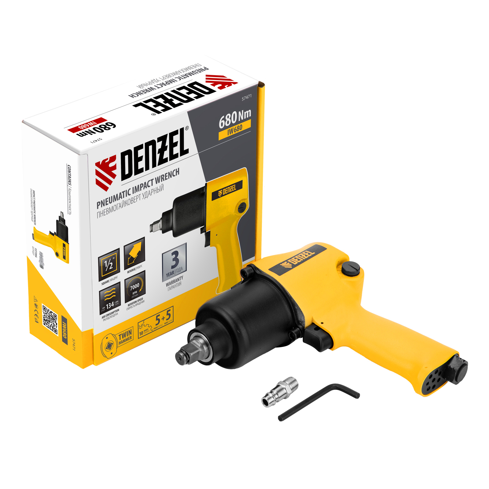 Ударный пневмогайковерт IW680, 1/2", 7000 об/мин, 680 Нм Denzel в Москве