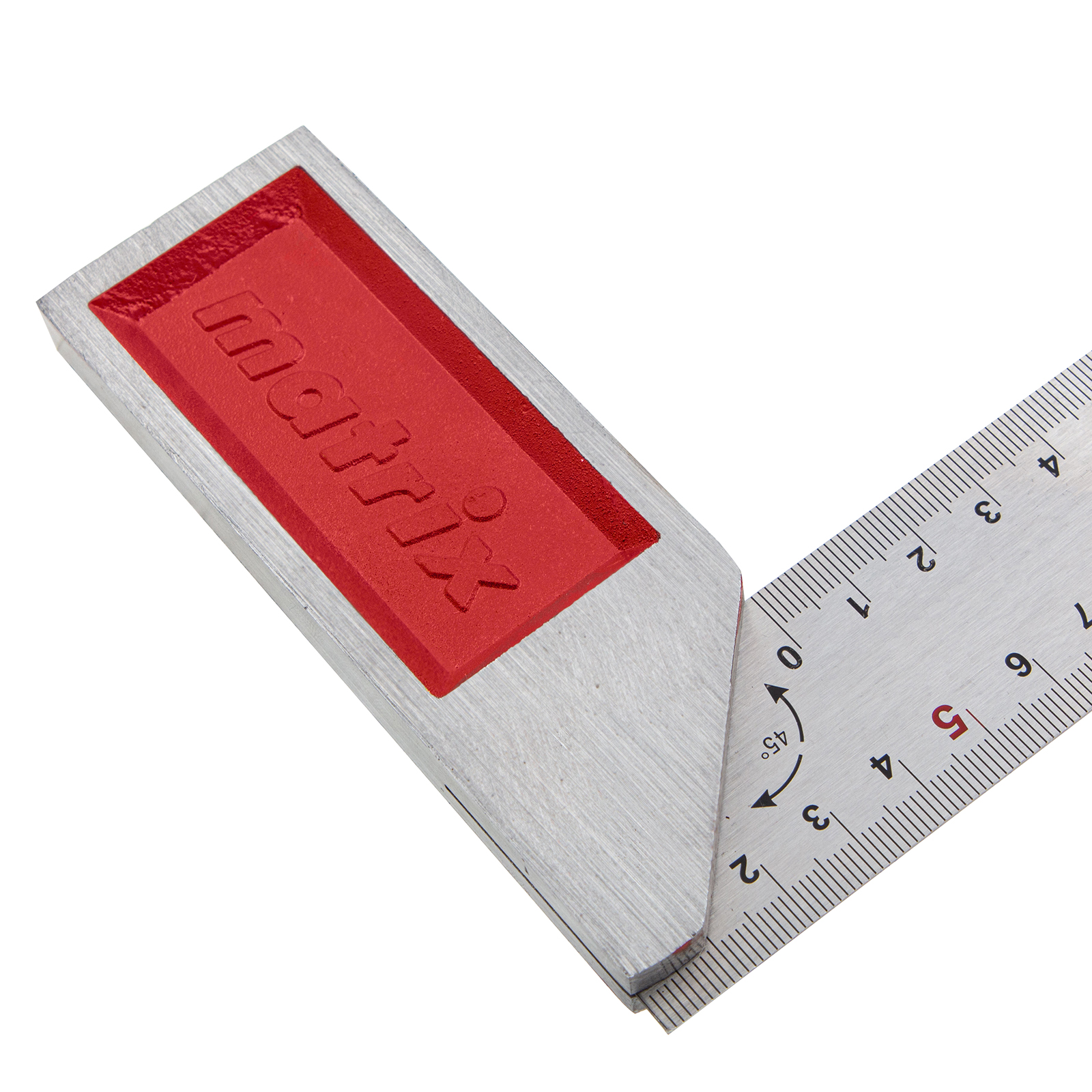 Стальной угольник Matrix 32390 длиной 250 мм, с градуировкой, — измерительный инструмент для построения и контроля углов. Будет полезен для проведения столярных и строительных работ.