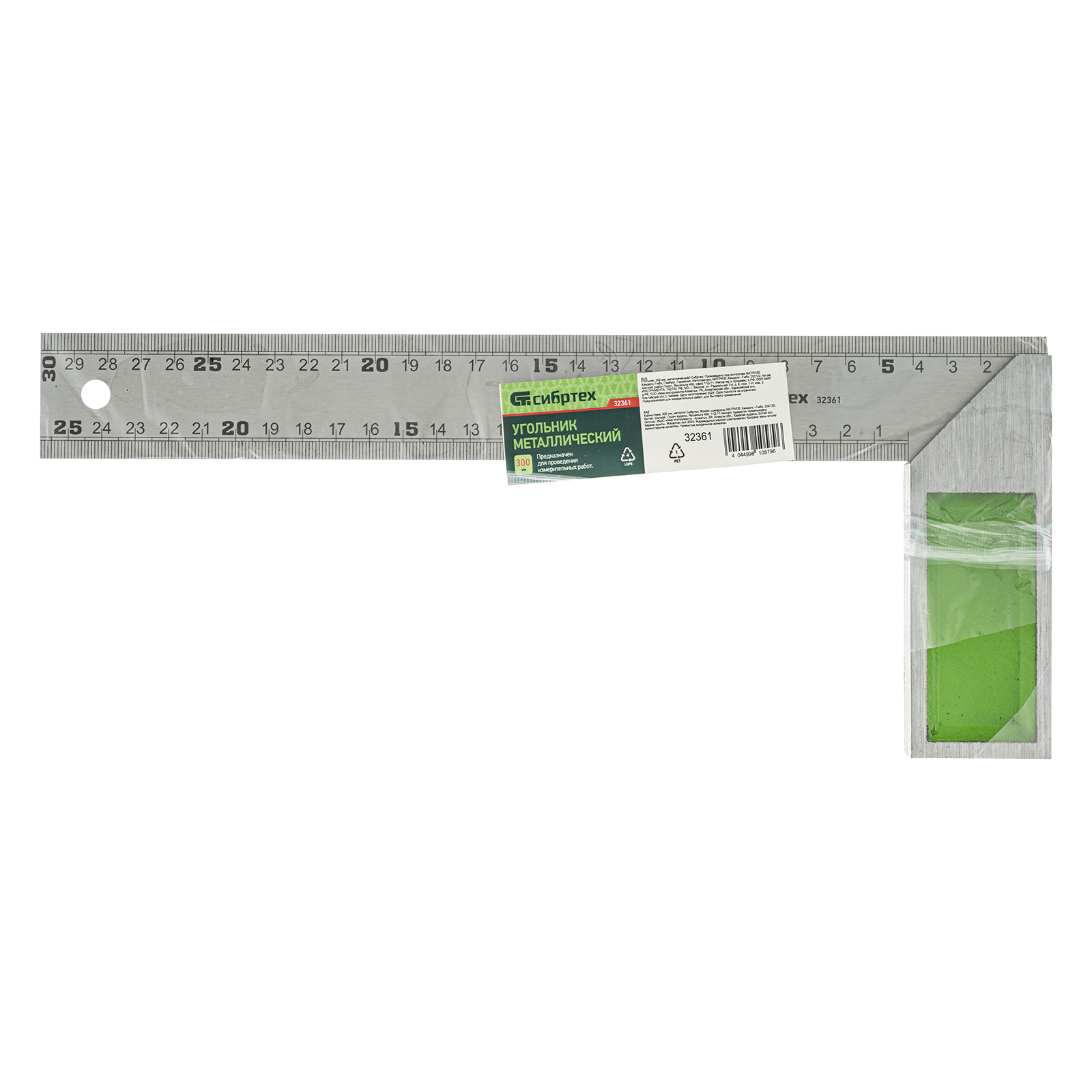 Металлический угольник Сибртех 32361 длиной 300 мм предназначен для проверки углов 45° и 90° во время сборки и обработки изделий. Используется также для разметки поверхностей во время строительных и столярных работ.
