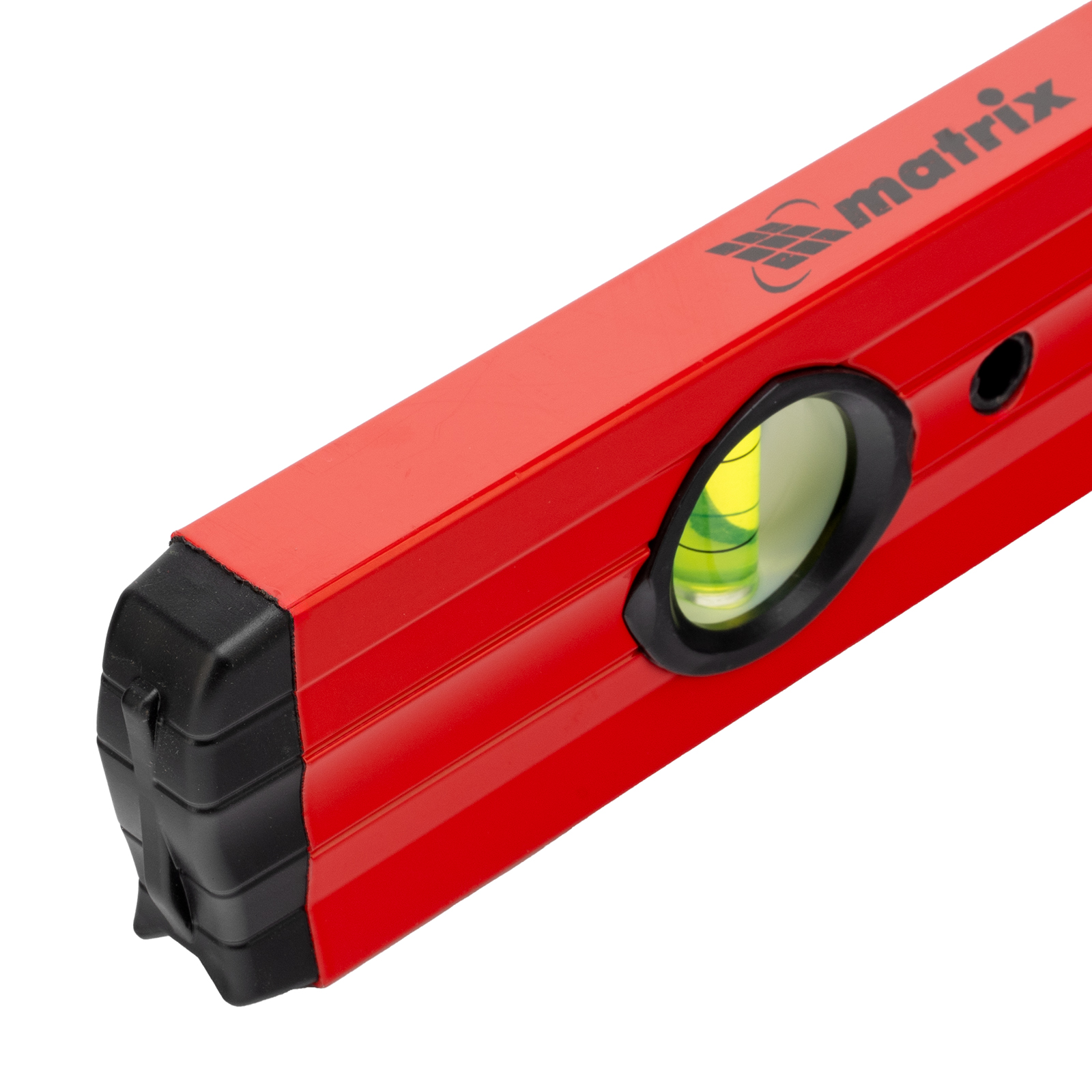 Фрезерованный алюминиевый уровень Matrix 33228 длиной 1000 мм, с 3 глазками и 2 эргономичными ручками, поможет проверить горизонтальные и вертикальные поверхности, выставить угол 45 градусов. Он будет полезен на любом этапе строительства и ремонта: при облицовке и отделке поверхностей, монтаже конструкций и т.д. Погрешность измерений на метр не превышает 1 мм (0,057 градуса).,Для определения отклонения вертикали 90 градусов необходимо использовать пузырьковую ампулу только в верхнем положении уровня. Только базовая поверхность является рабочей (противоположная ампуле 180 градусов).