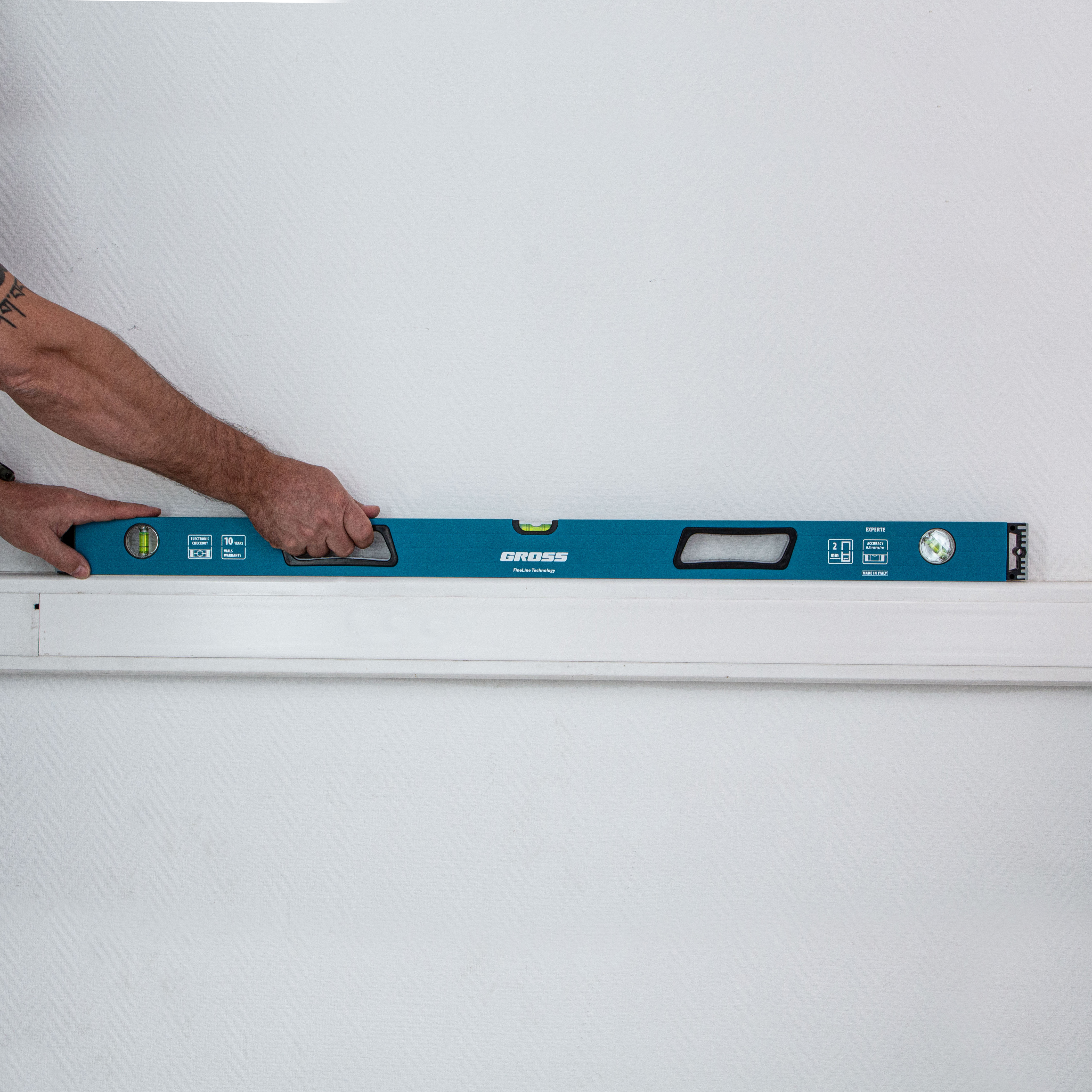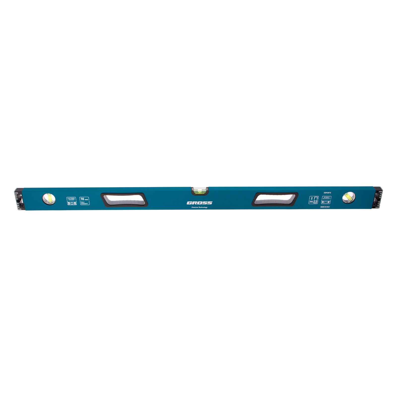 Усиленный алюминиевый уровень Gross 34330 длиной 1000 мм, с ударопрочными заглушками, рукоятками и 3 глазками, — универсальный инструмент для решения профессиональных задач на строительной площадке. Благодаря ему можно выровнять поверхности относительно горизонтали и вертикали или проверить соответствие углу 45 градусов.