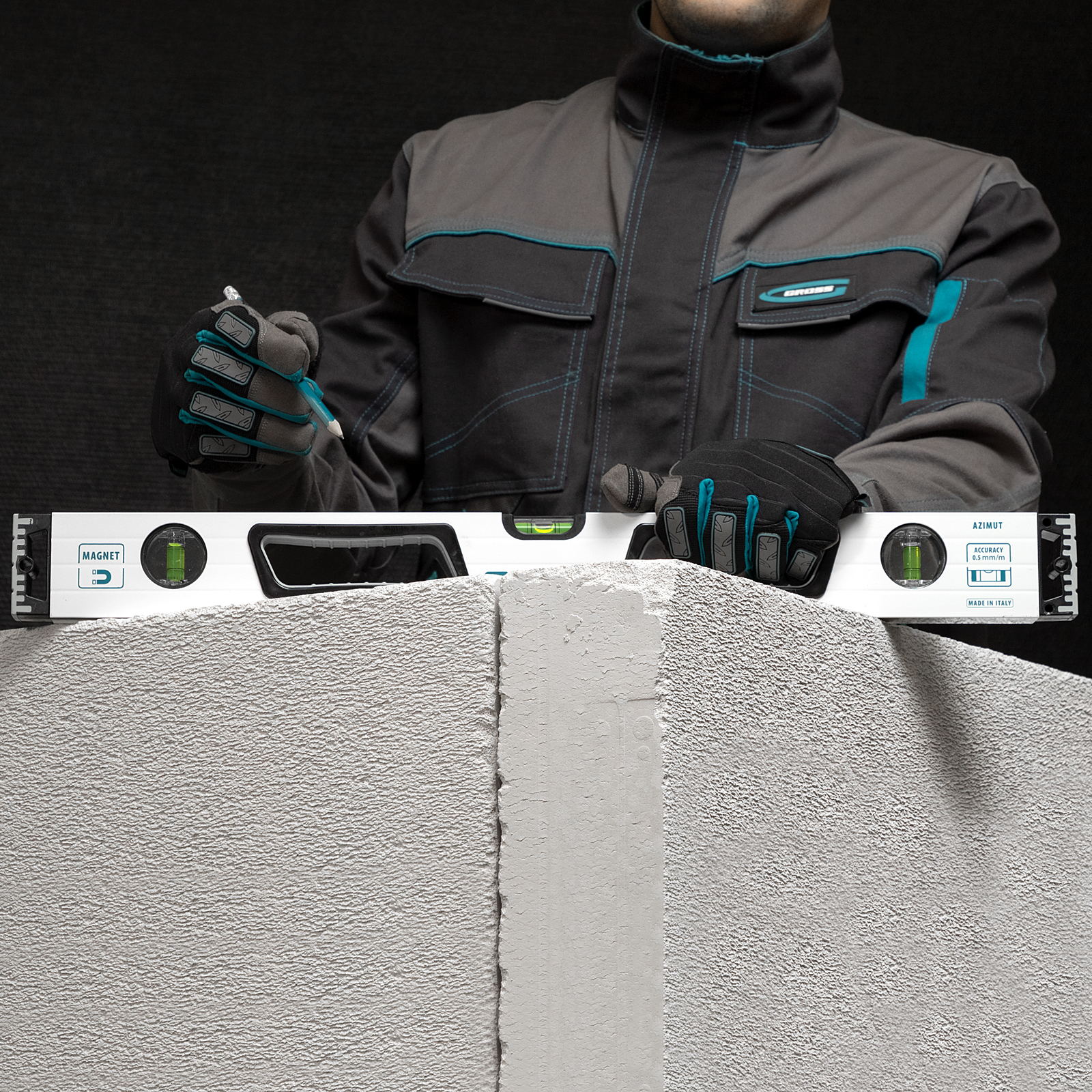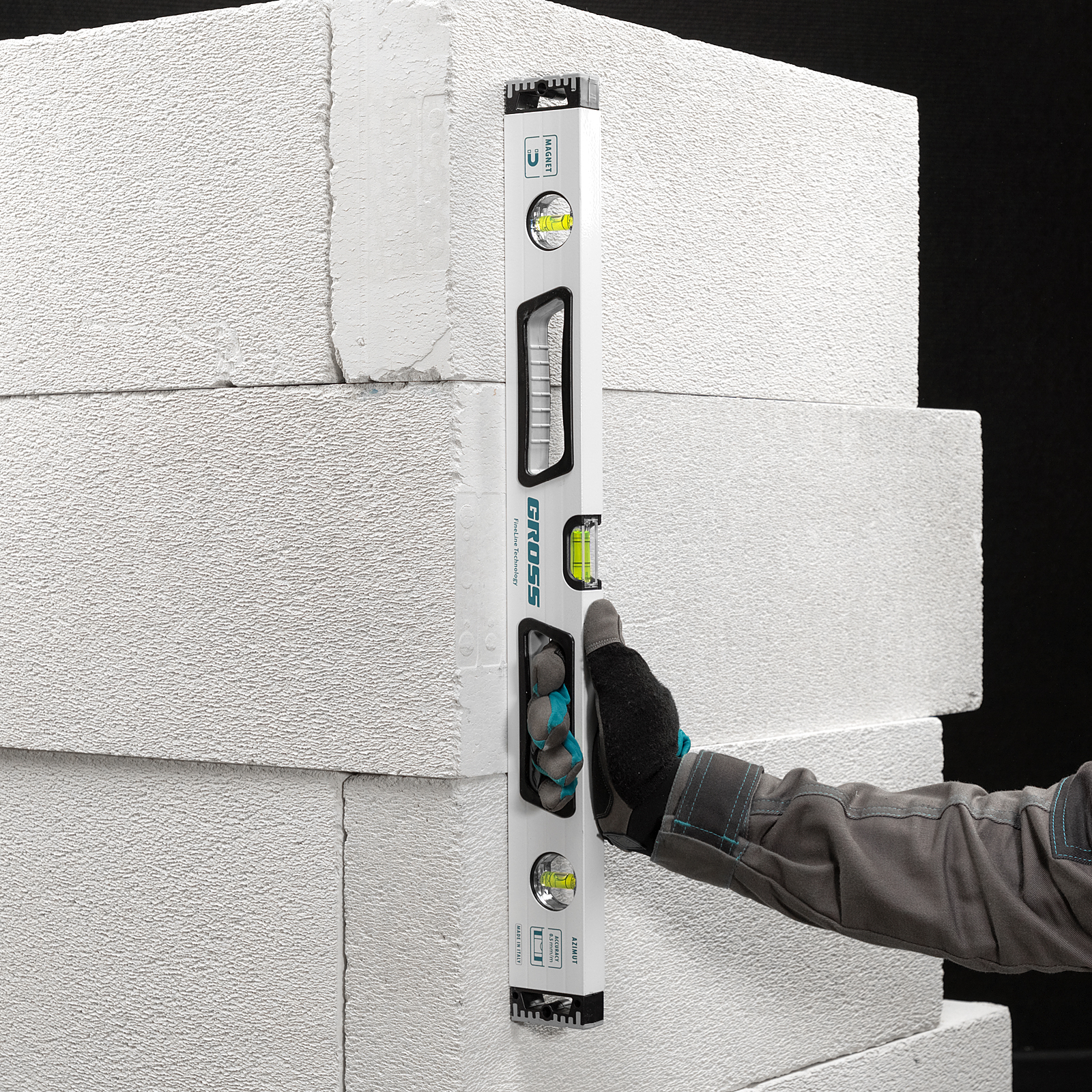 Уровень алюминиевый, 600 мм, усиленный, рукоятки, фрезерованный, 3 глазка, магнитный Gross в Москве