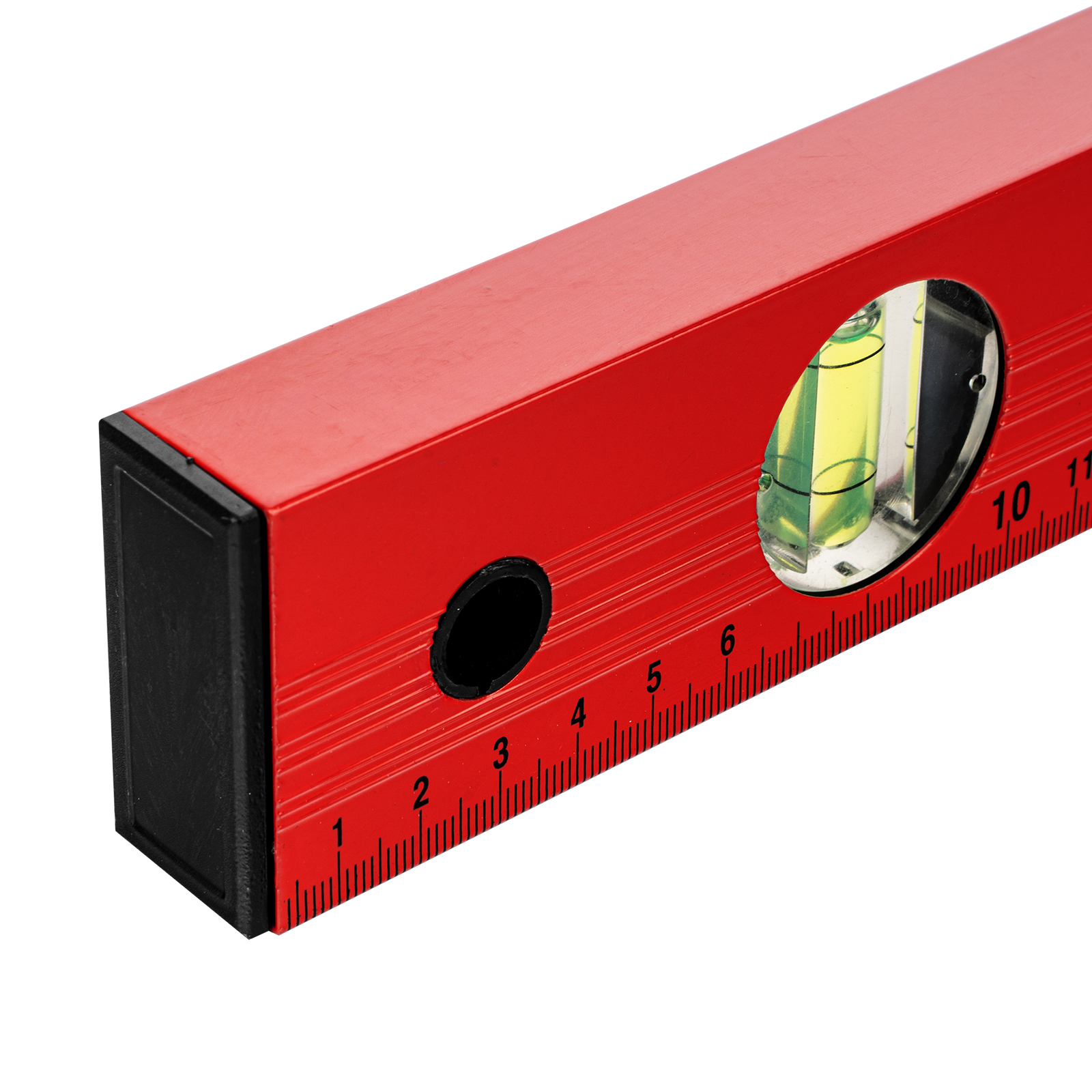 - Мерная шкала на корпусе уровня позволяет использовать его в качестве линейки.