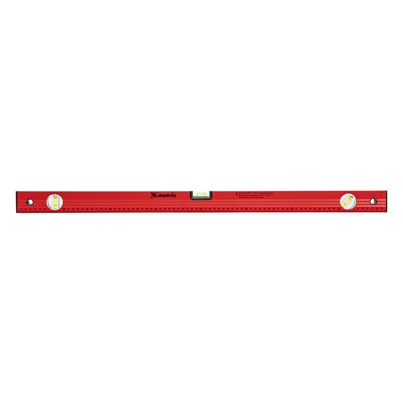 Уровень алюминиевый, 800 мм, 3 глазка, красный, линейка Matrix в Москве