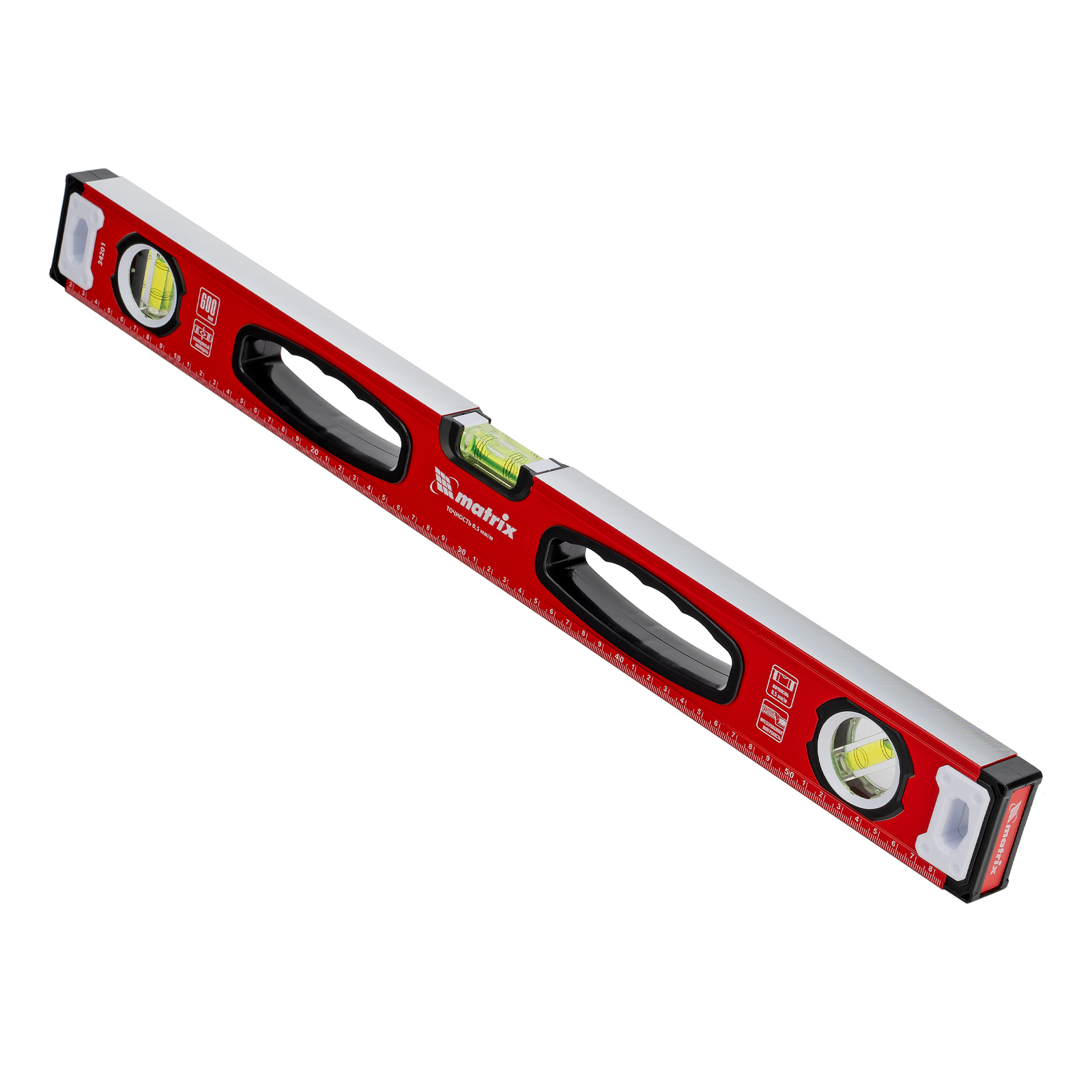 Уровень алюминиевый, фрезерованный, 3 глазка, рукоятки, 600 мм Matrix в Москве