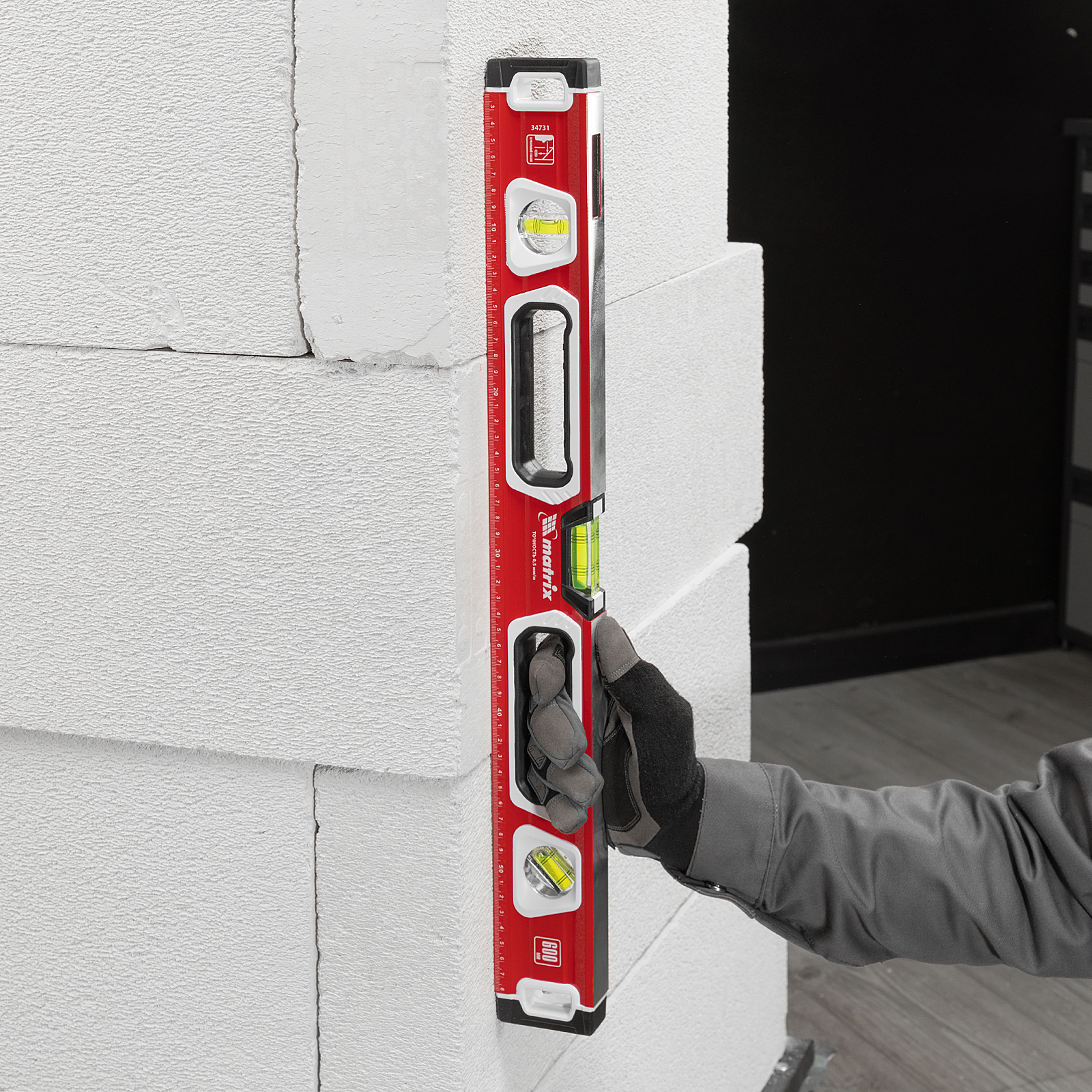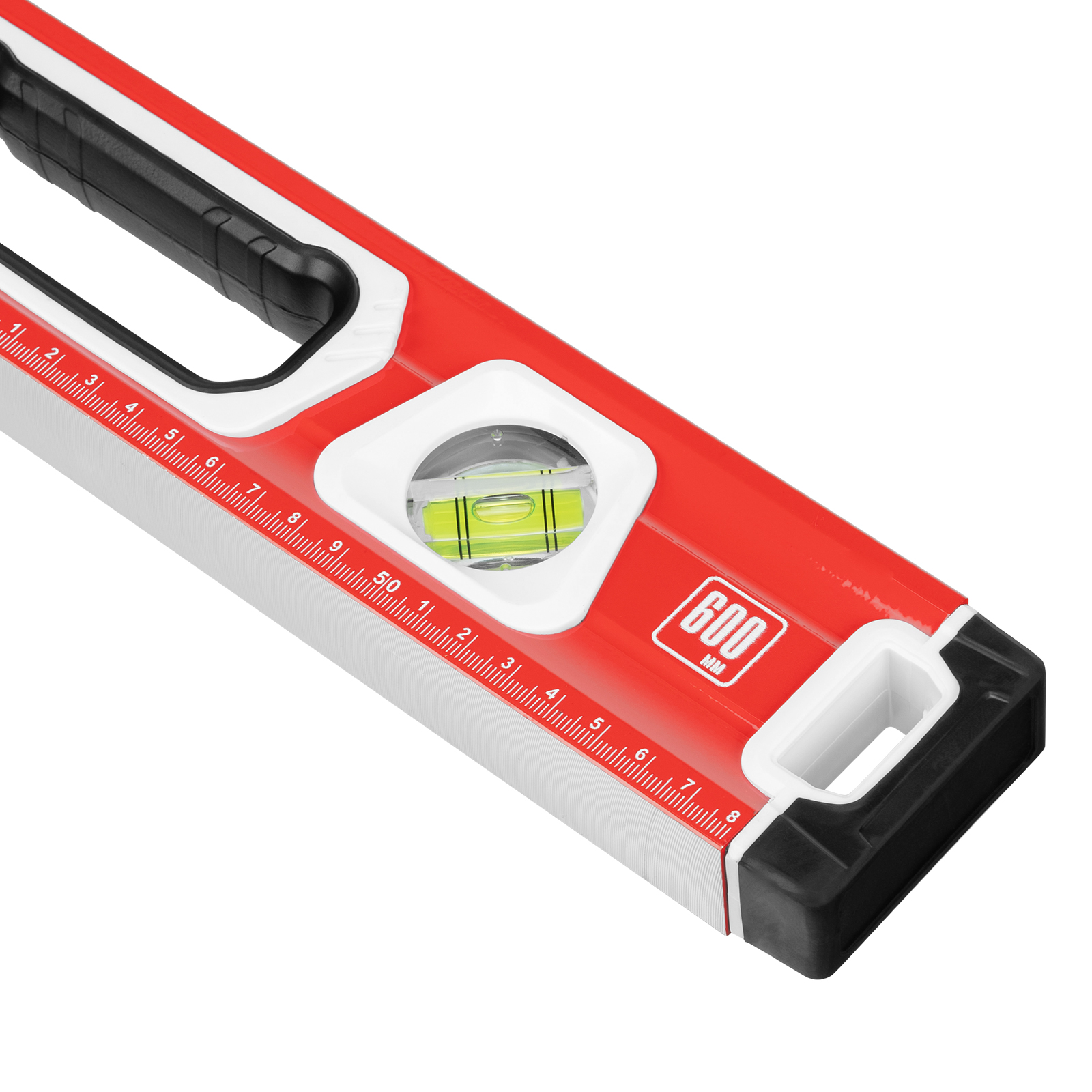 Алюминиевый уровень Matrix 34731 длиной 600 мм, магнитный, фрезерованный, с двухкомпонентными рукоятками, 3 глазками и 1 зеркальным отражателем, относится к категории измерительных инструментов. Служит для контроля отклонений поверхностей от горизонтали, вертикали и угла 45 градусов. Инструмент понадобится при осуществлении работ, требующих высокой точности.,Для определения отклонения вертикали 90 градусов необходимо использовать пузырьковую ампулу только в верхнем положении уровня. Только базовая поверхность является рабочей (противоположная ампуле 180 градусов).