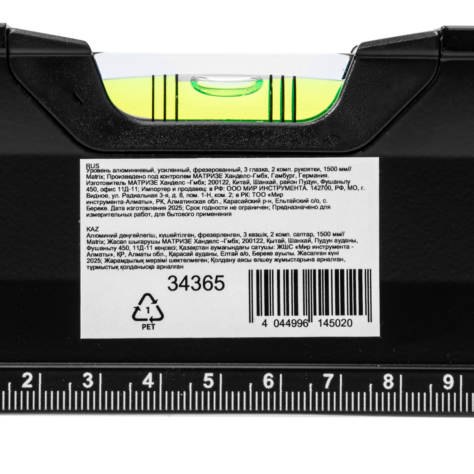 Уровень алюминиевый, усиленный, фрезерованный, 3 глазка, двухкомпонентные рукоятки, 1500 мм Matrix в Москве