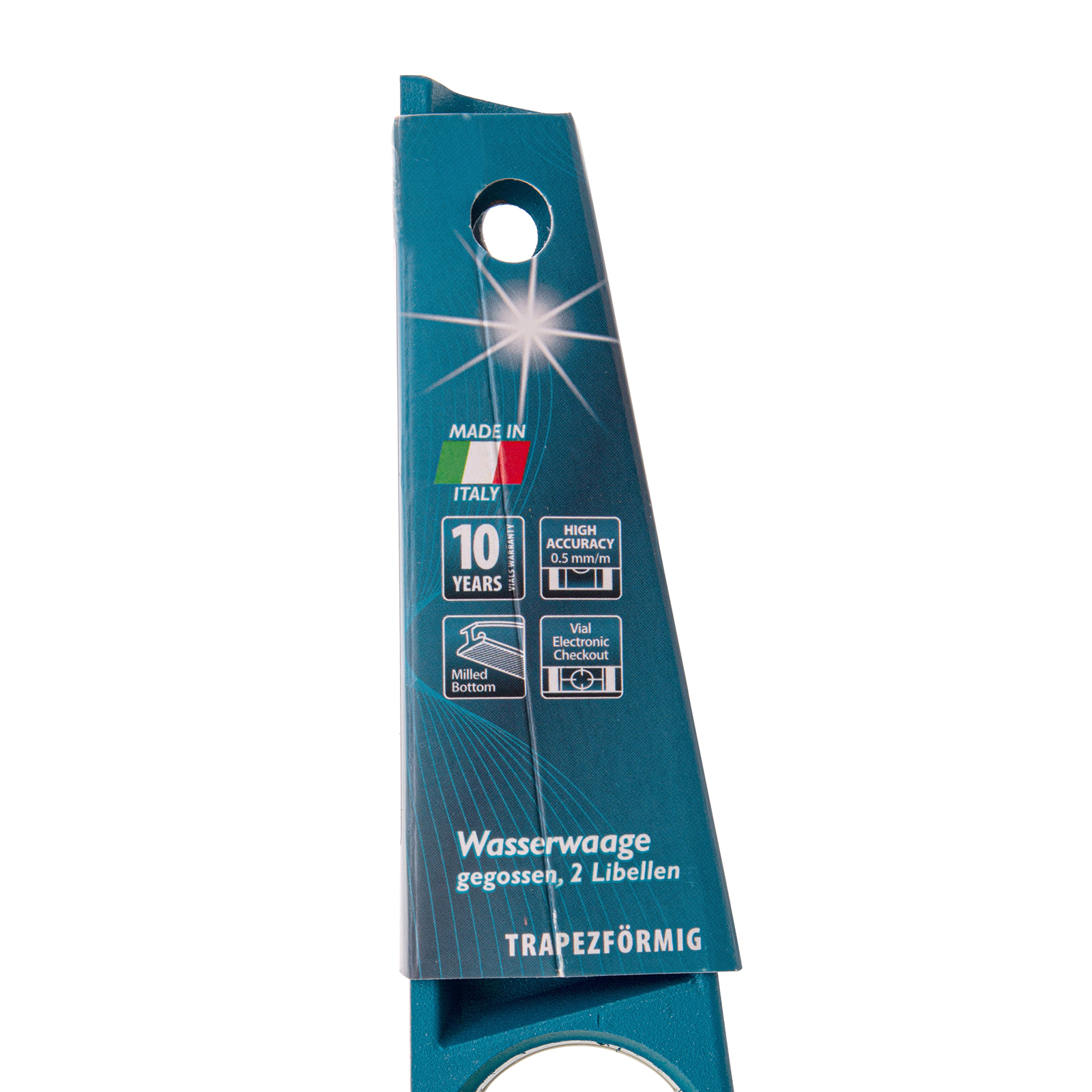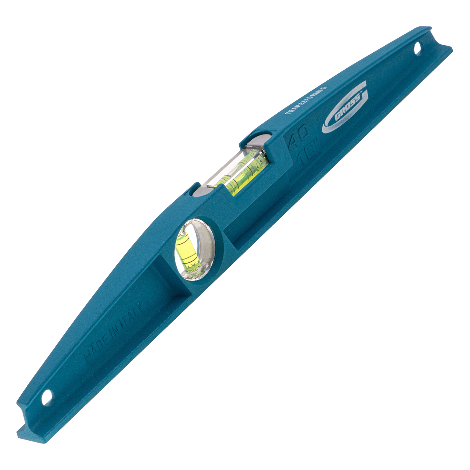 Литой уровень Gross 34914 длиной 400 мм снабжен 2 глазками для построения вертикали и горизонтали. Инструмент оптимально подходит для использования при укладке напольной и настенной плитки, кирпичной кладки, брусчатки и т.д.