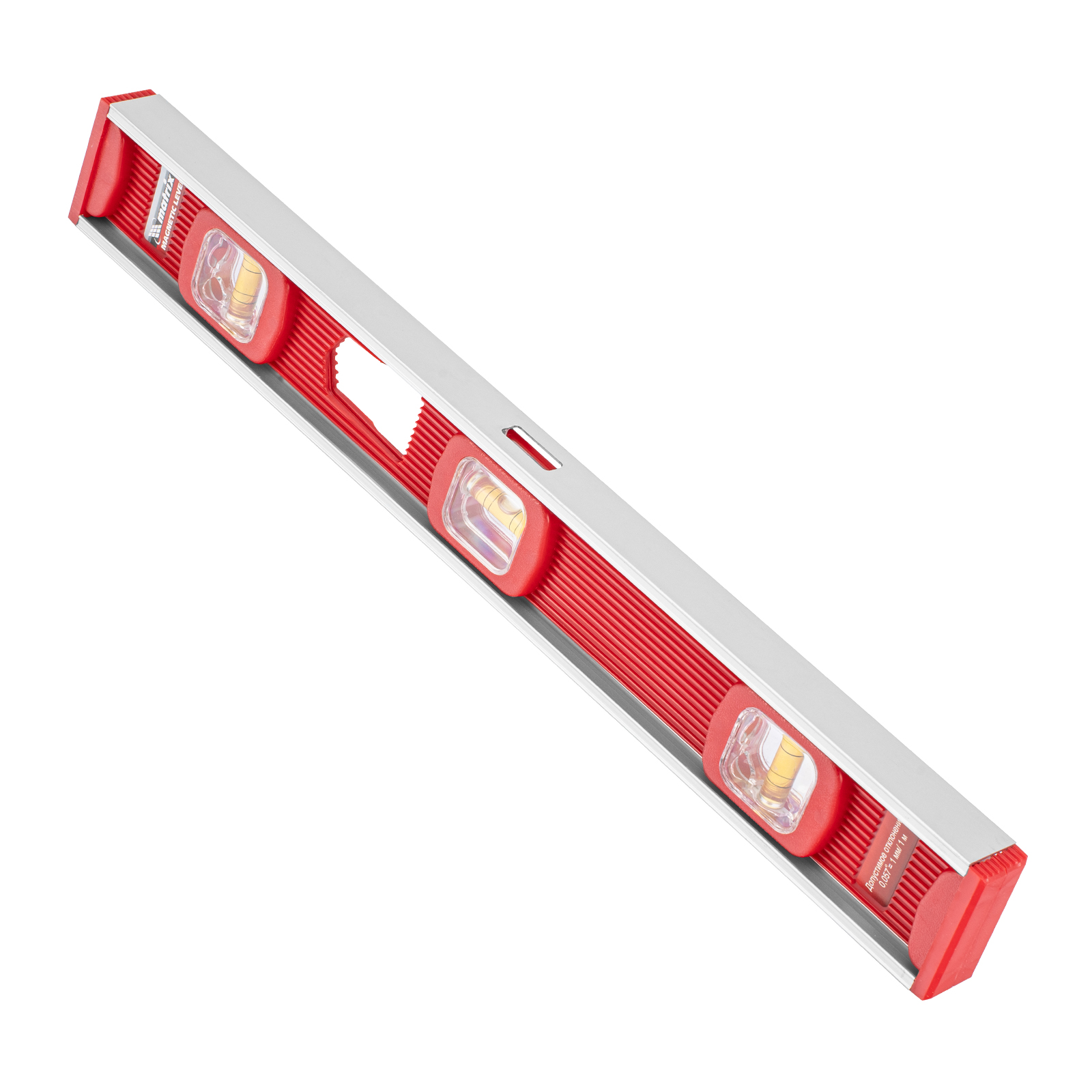 Магнитный уровень Matrix 33701 длиной 460 мм, с 3 глазками, — измерительный инструмент для проверки горизонтальных и вертикальных поверхностей. Пригодится на строительной площадке или в быту для выравнивания поверхностей, при монтаже конструкций, отделке помещений и выполнении других операций. Погрешность не превышает 1 мм на каждый метр (0,057°).