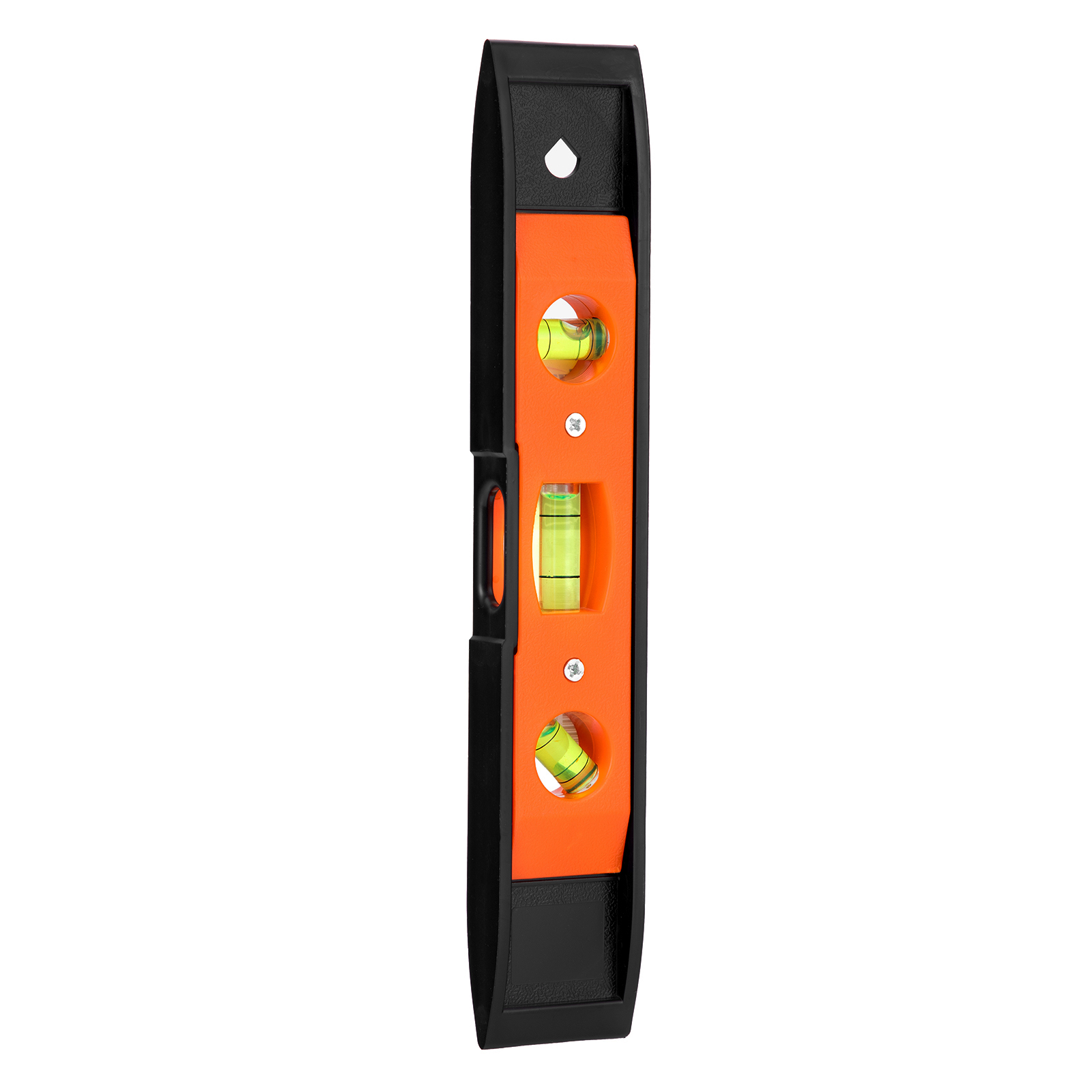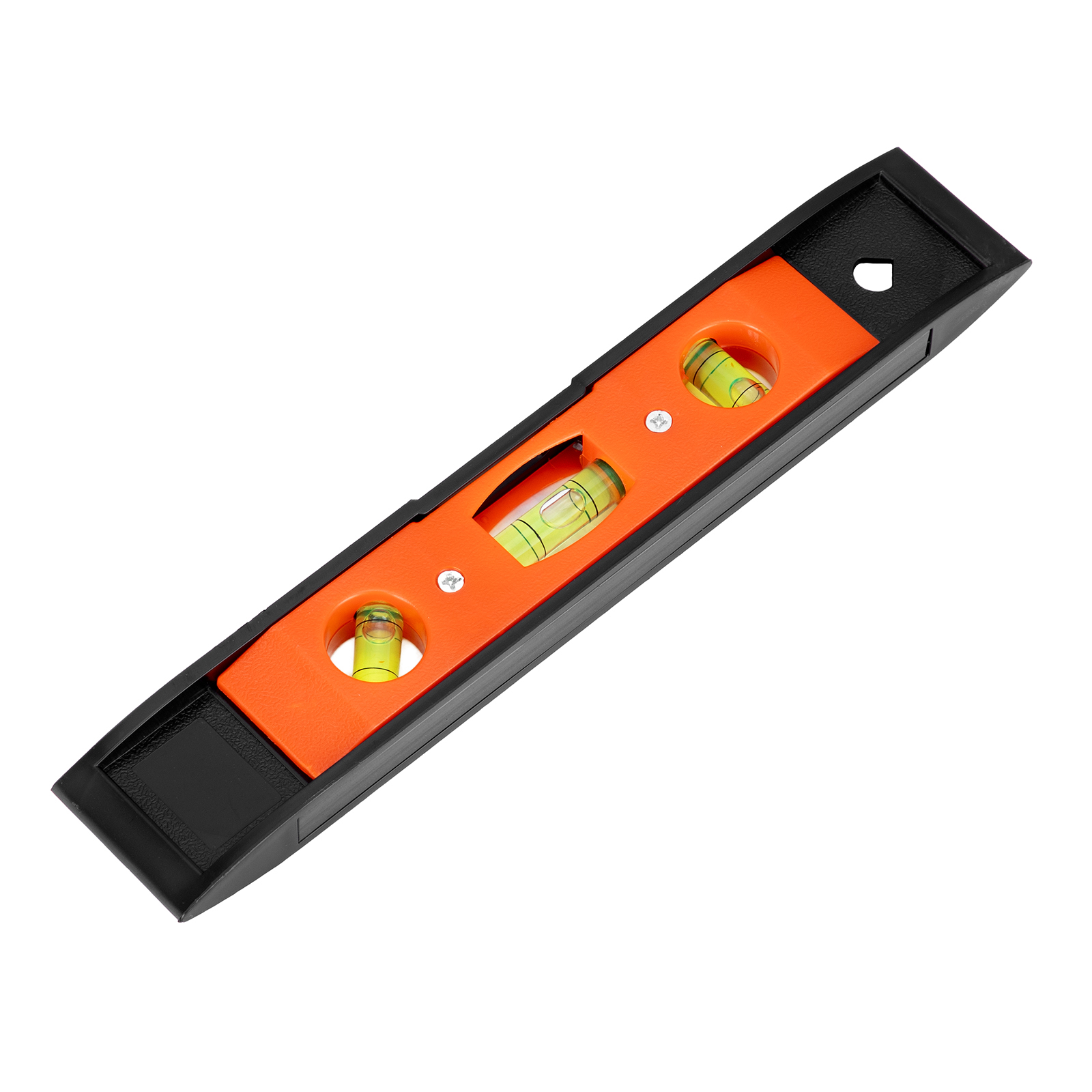 Пластмассовый магнитный уровень Sparta «Торпедо» (II) 346055 длиной 225 мм, с 3 глазками, используется для контроля соответствия поверхностей вертикальной и горизонтальной плоскостям, а также углу 45°. Компактный инструмент удобен для работы в труднодоступных местах.