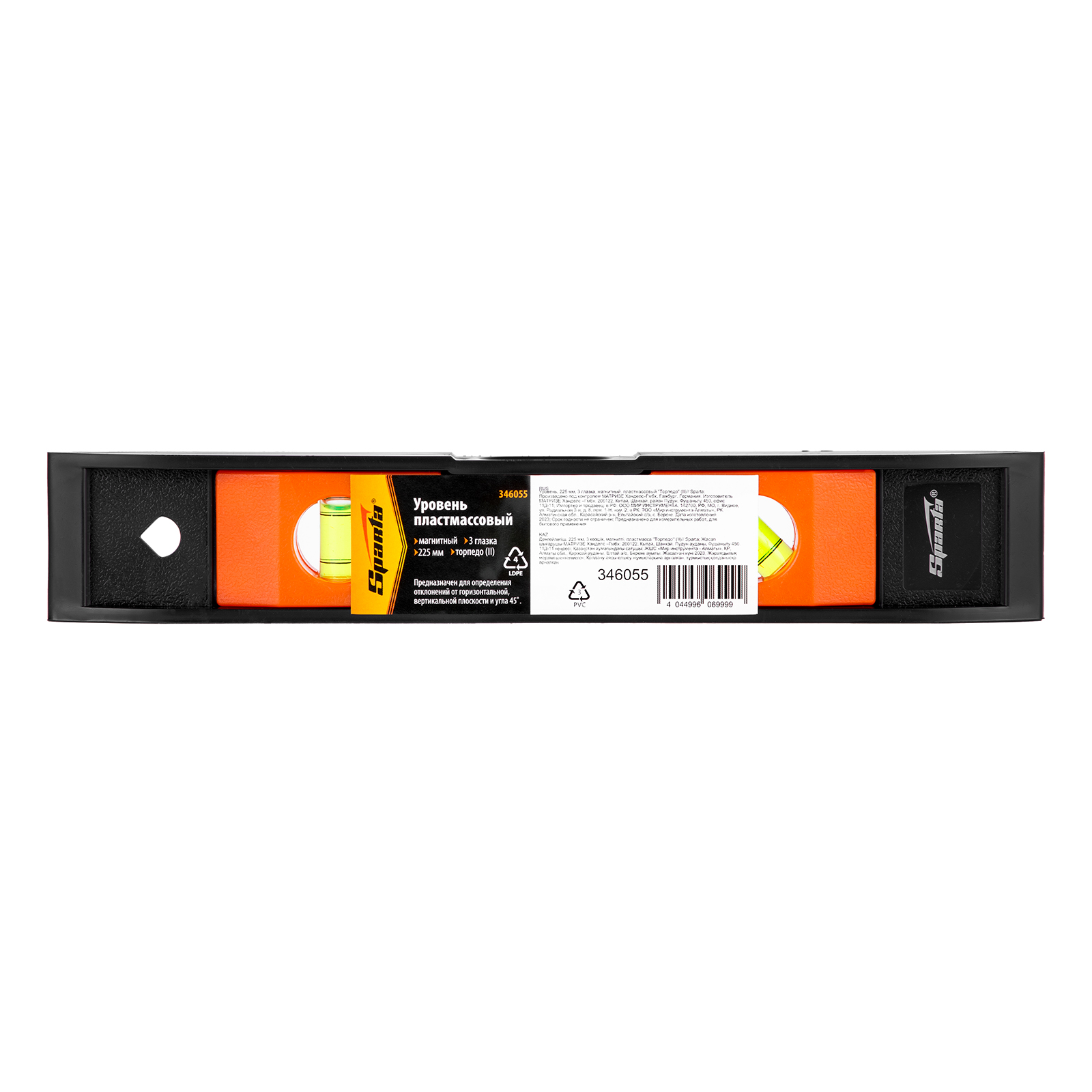 Уровень, 225 мм, 3 глазка, пластмассовый "Торпедо" (II) Sparta в Москве