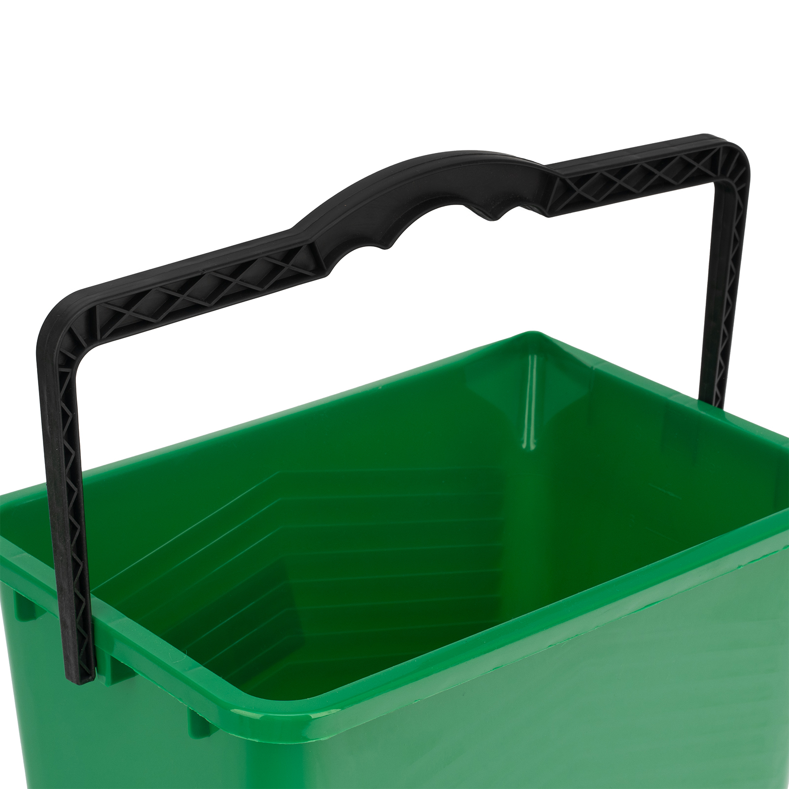 - Комфортная работа — прямоугольная форма ведра облегчает погружение валика, а рельефные полосы на внутренних стенках помогают удалять излишки краски с инструмента.