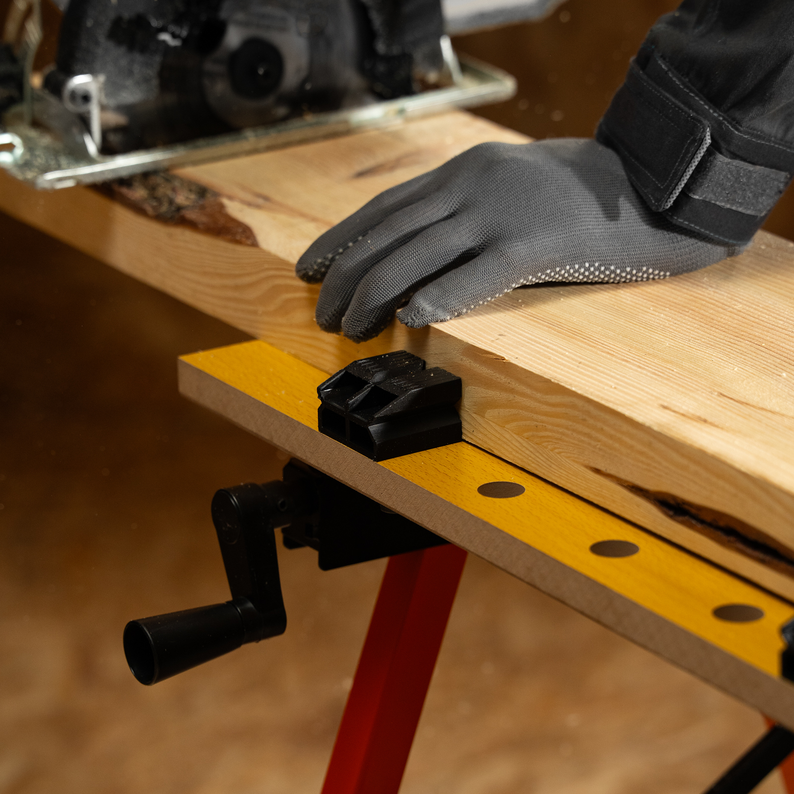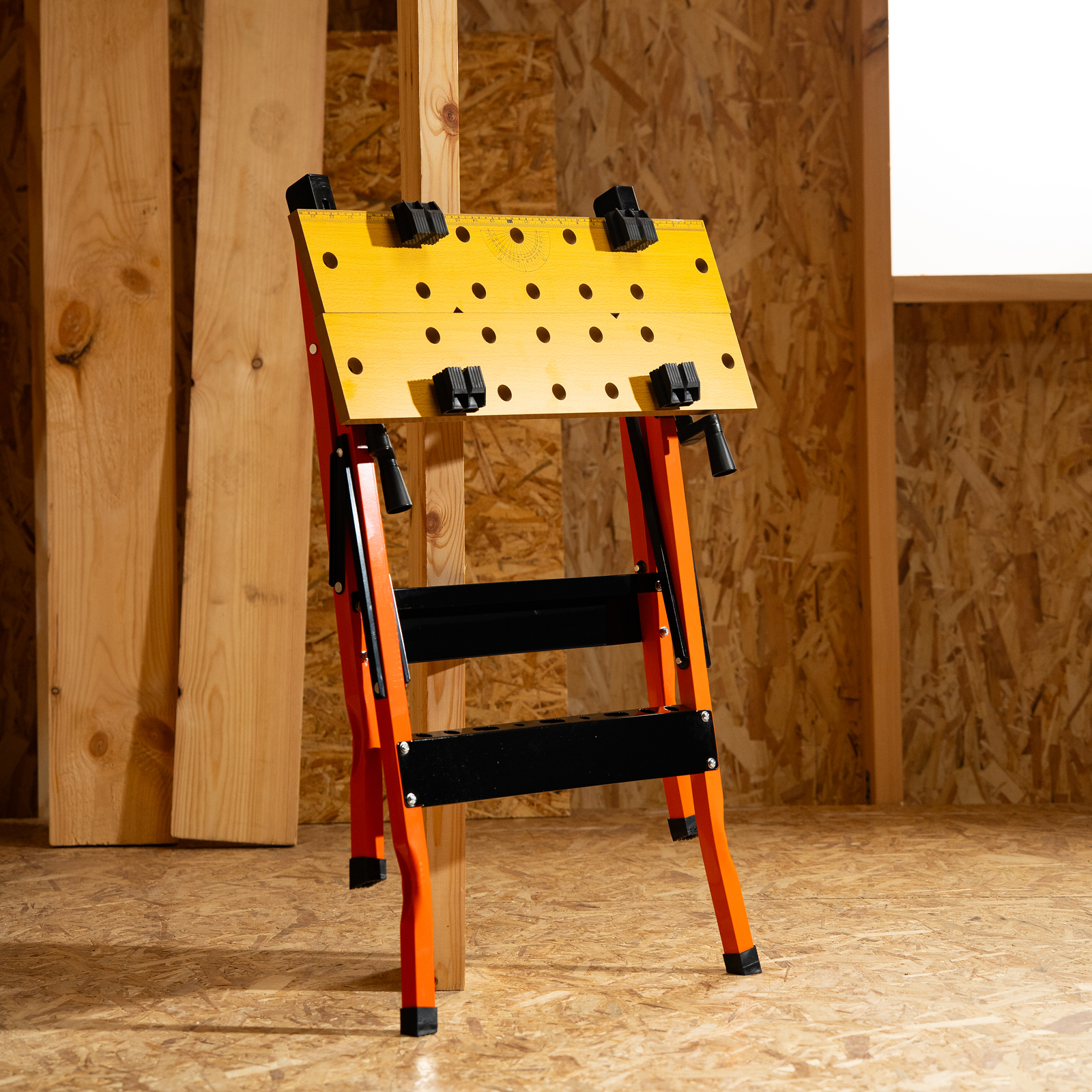 - Надежная конструкция — верстак-тиски выдерживает нагрузку до 100 кг.
