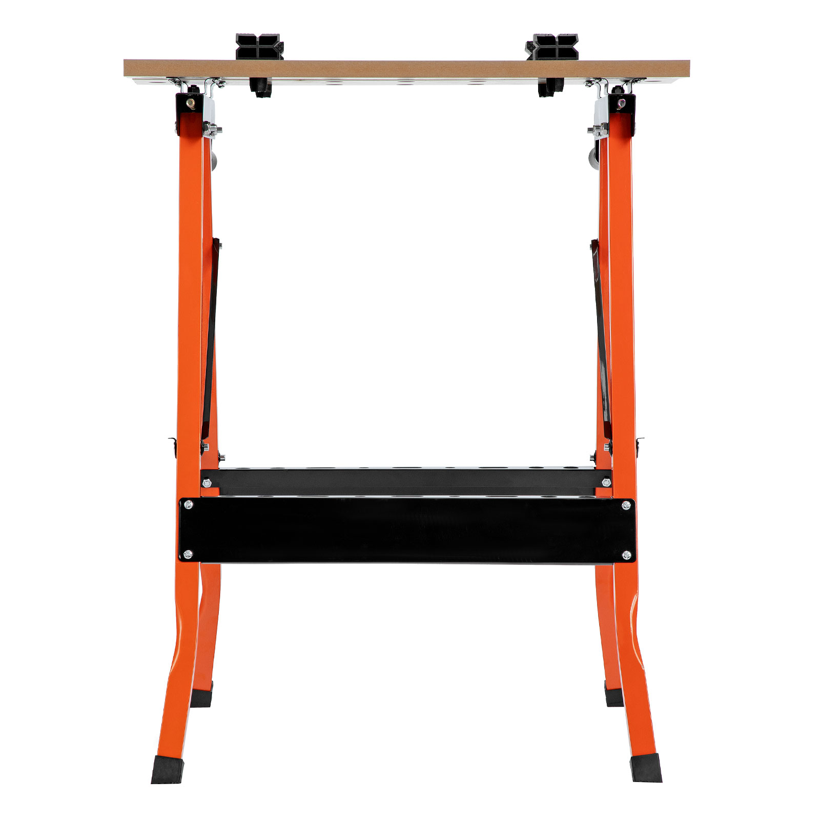 - Компактность — в сложенном виде верстак занимает мало места, его можно хранить без снятия элементов конструкции.