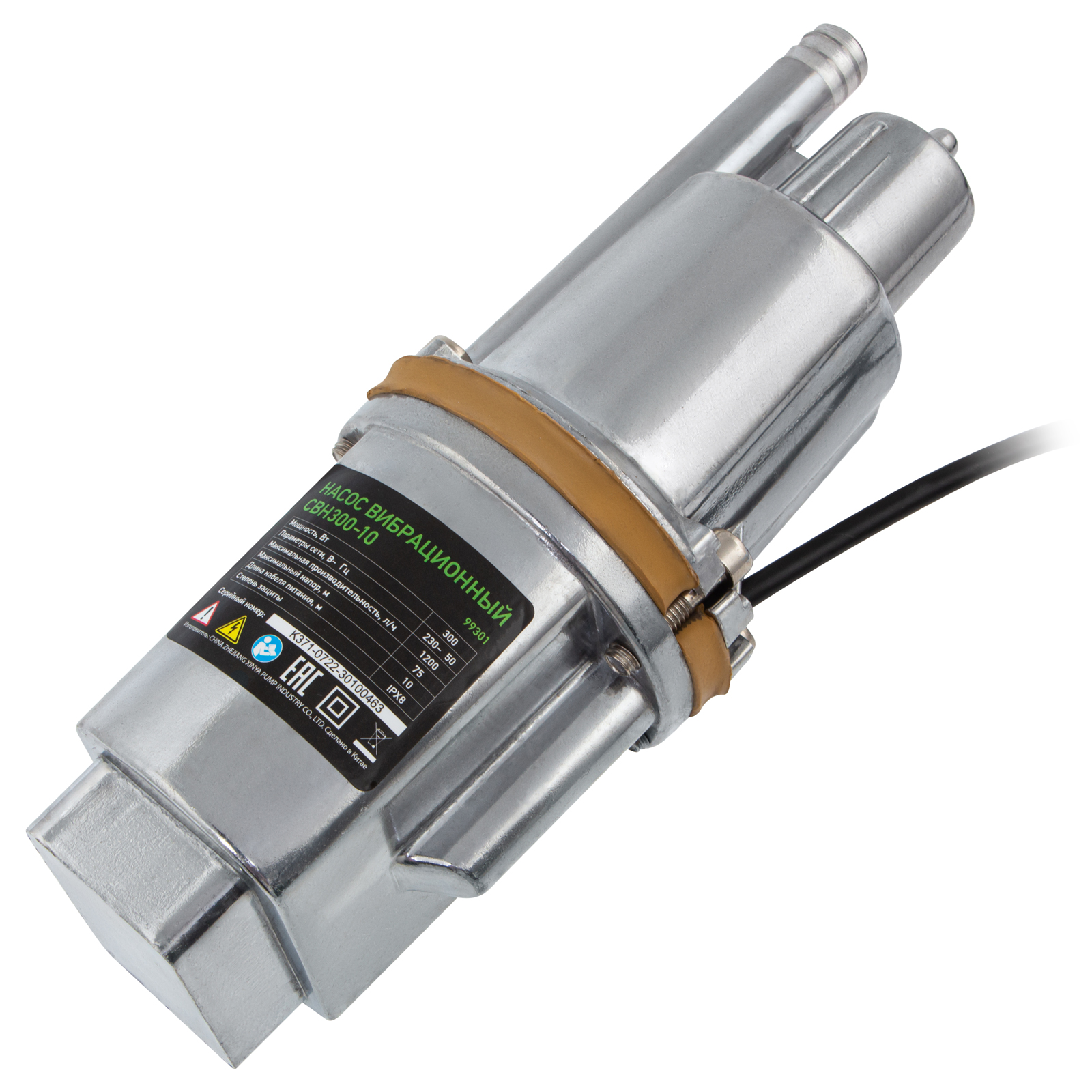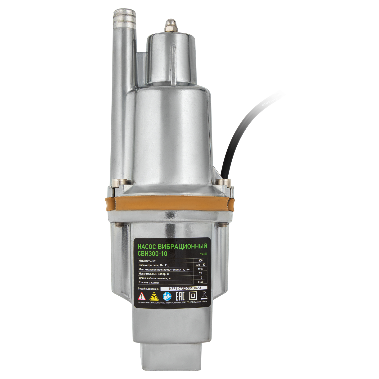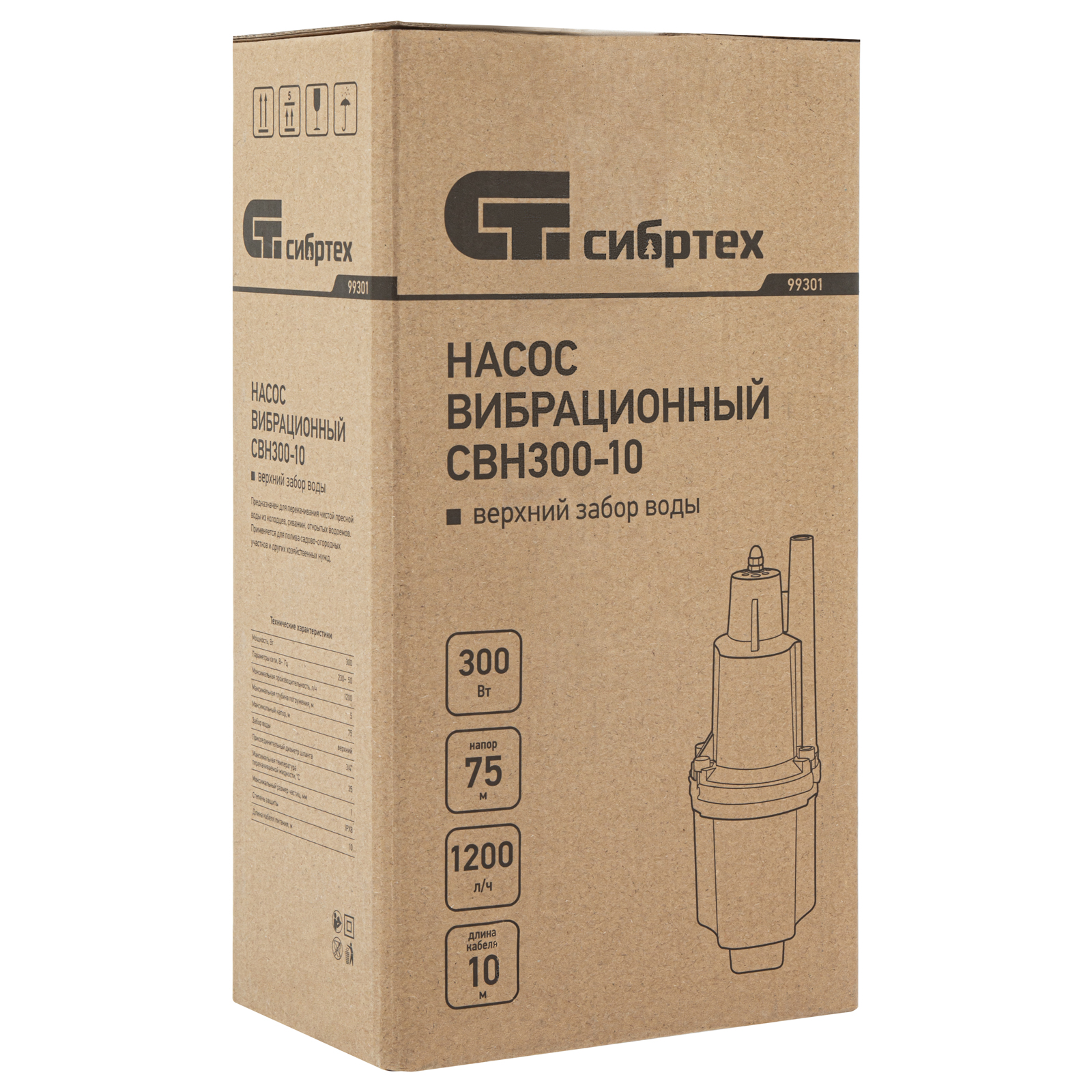 Вибрационный насос СВН300-10, верхний забор, 300 Вт, напор 75 м, 1200 л/ч, кабель 10 м Сибртех, 1200 л/ч в Москве