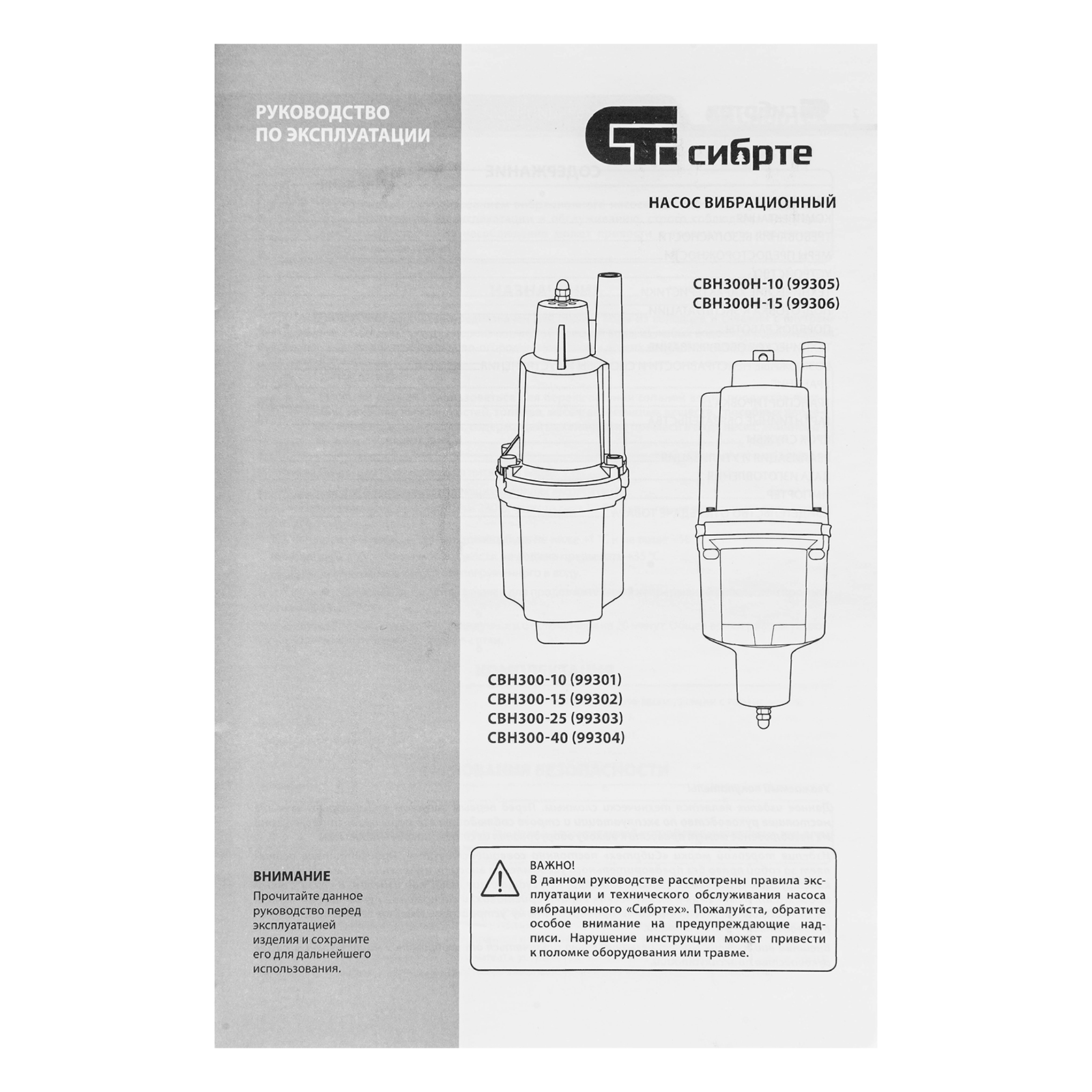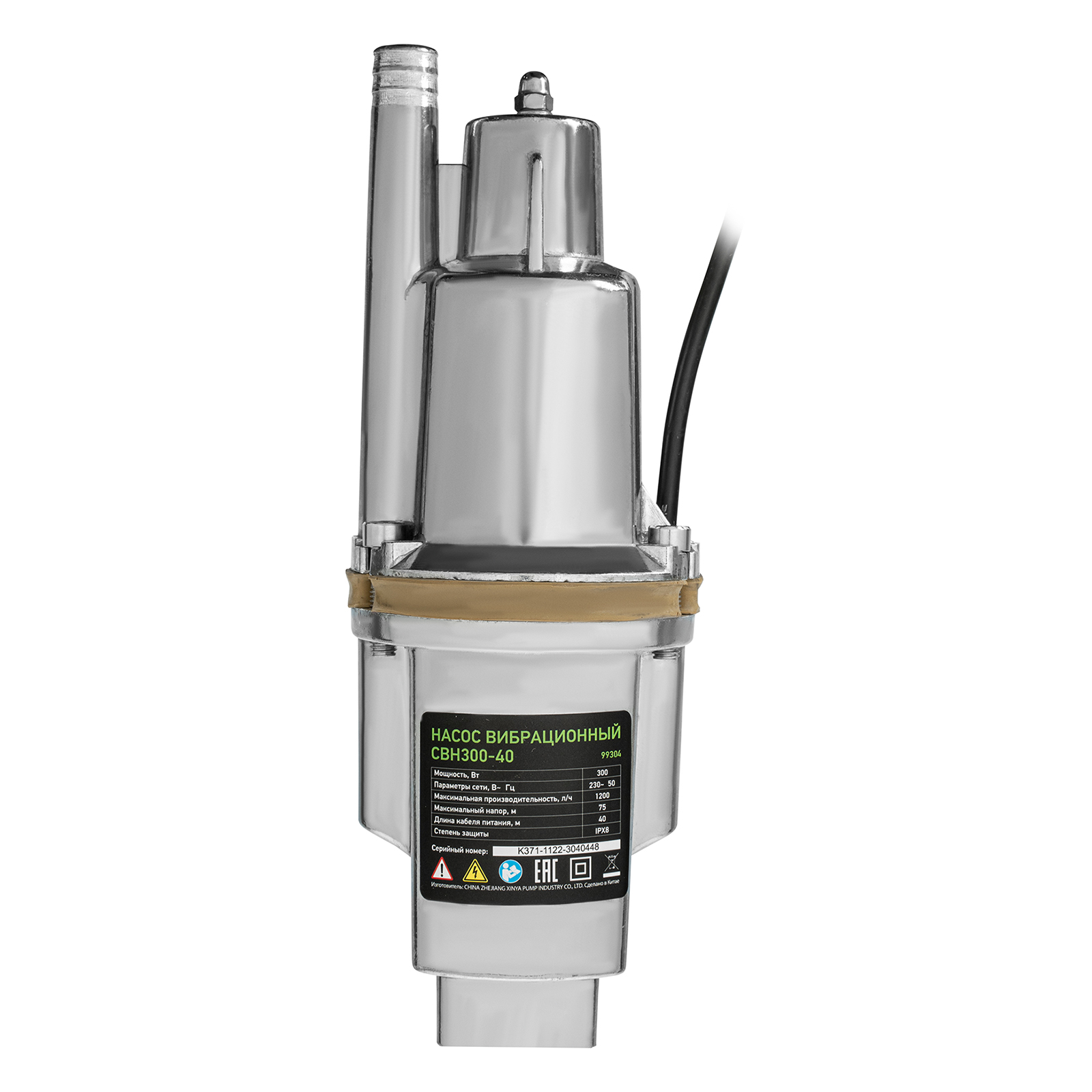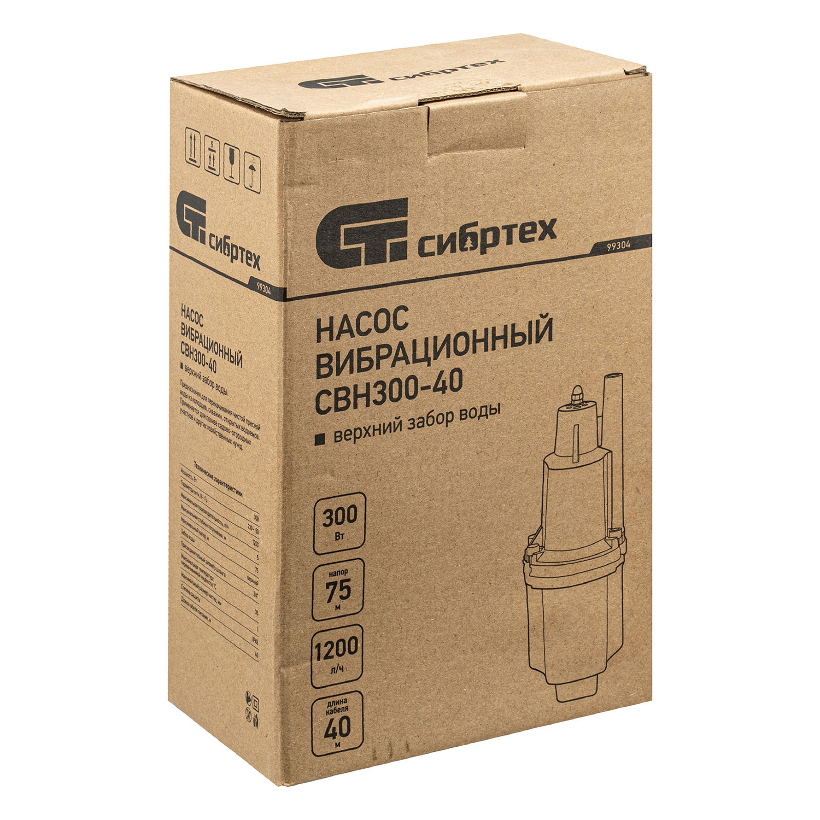 Вибрационный насос СВН300-40, верхний забор, 300 Вт, напор 75 м, 1200 л/ч, кабель 40 м Сибртех в Москве