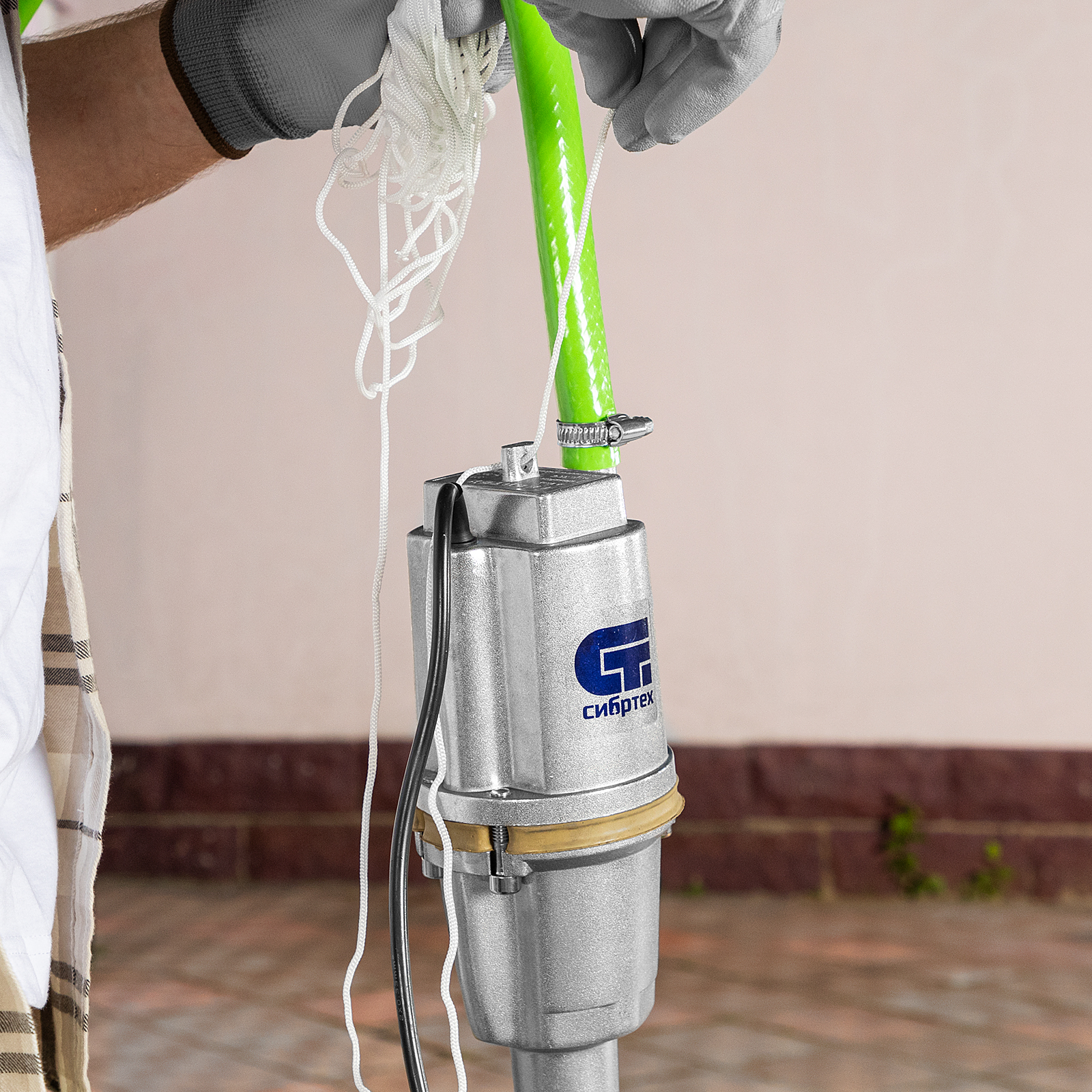 Вибрационный насос Сибртех СВН300Н-10 99305 с кабелем 10 м и нижним забором жидкости имеет мощность 300 Вт и производительность до 1200 л/ч, обеспечивает напор до 75 м и предназначен для перекачивания чистой воды из колодцев и скважин диаметром от 10 см на глубине погружения до 5 м. Также может осуществлять забор воды из водоемов, резервуаров, затопленных помещений. Его используют в системах орошения садов и огородов или для организации водоснабжения на даче.